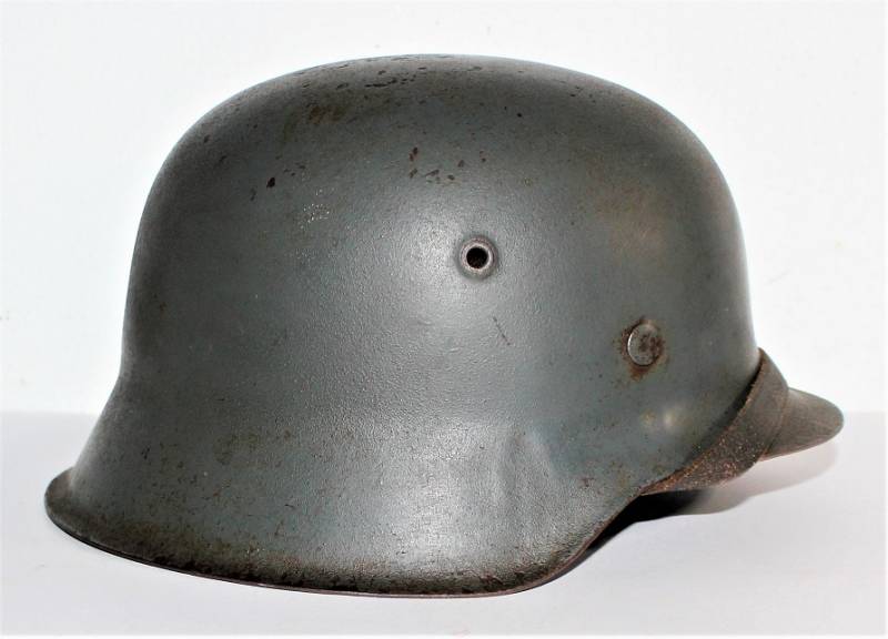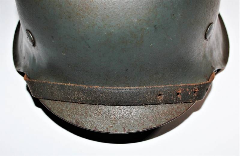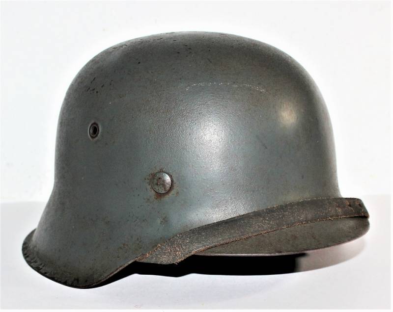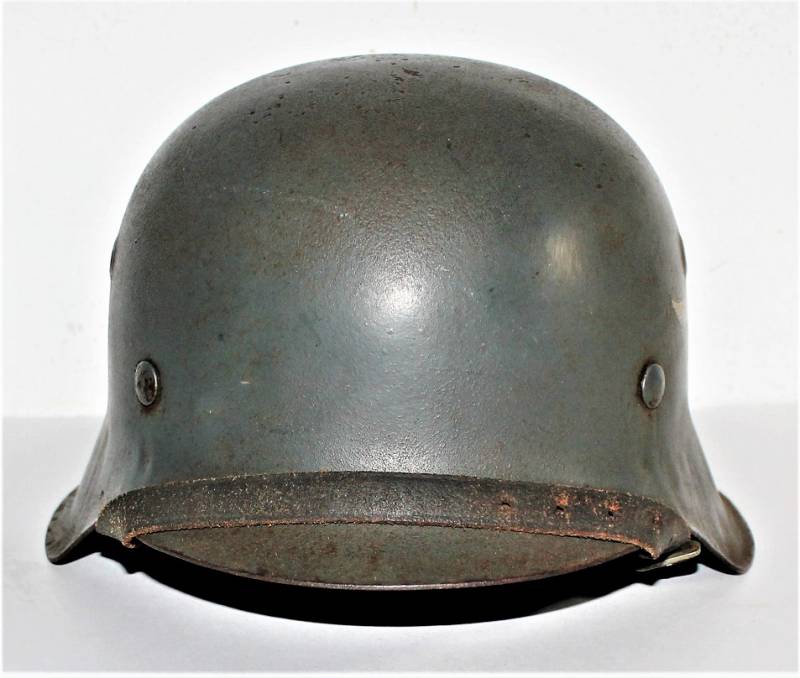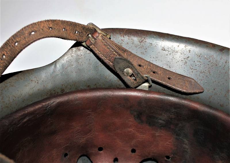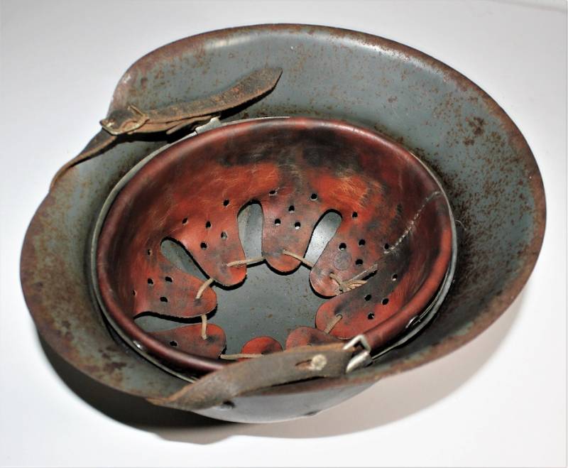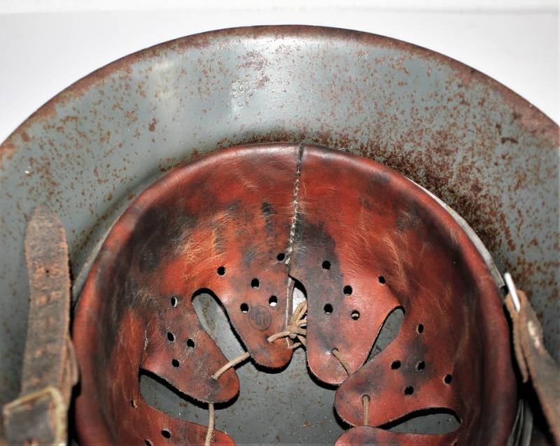 Luftwaffe M42 helmet monodekal in excellent condition, born in Luftwaffe wrinkled blue color, not restored or repaired and never disassembled, complete in all its parts, only light patina of time and use, color 85-90% decal at 95 %, leather in excellent condition, not damaged only patinated by time, iron marked with manufacturer code and lot number, iron size 64, leather size 57, chinstrap marked with manufacturer code and date 1943.