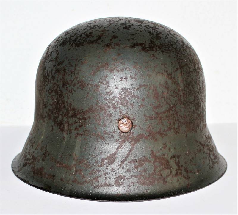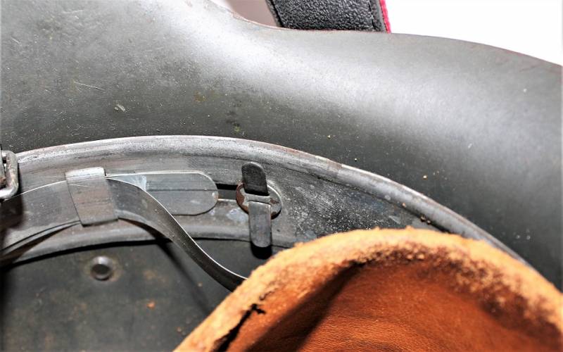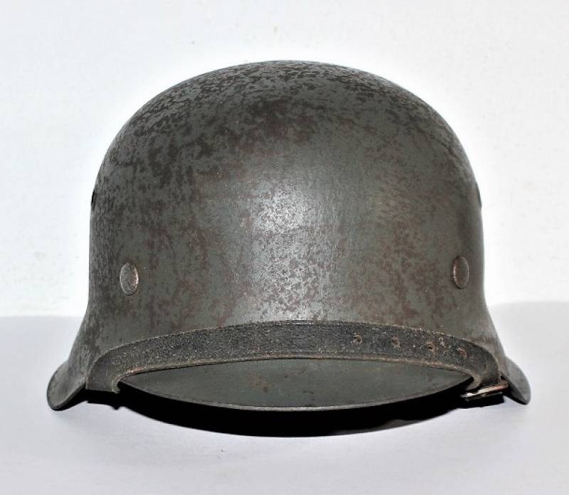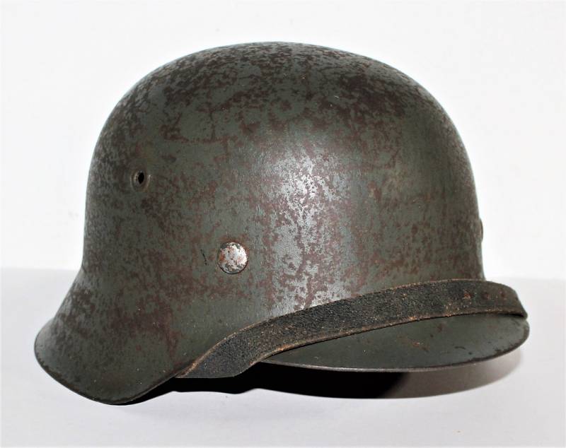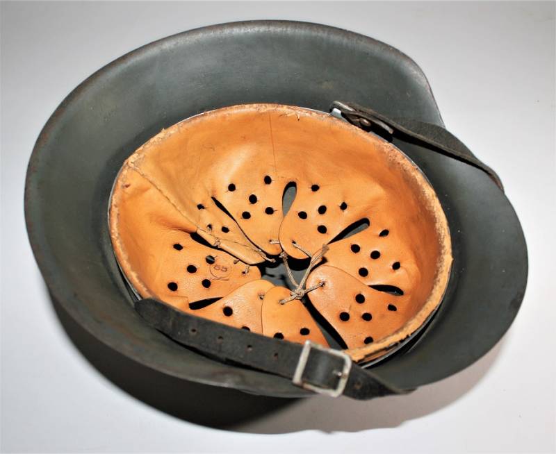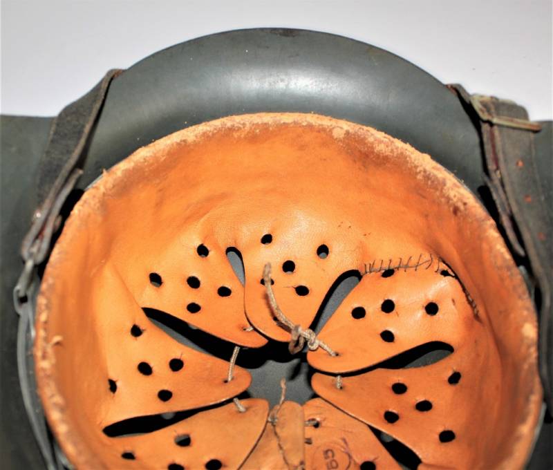 M42 helmet WH-LW-SS born without insigna in good condition with patina of time and use, complete in all its parts, liner and chinstrap never disassembled, born in 70% smooth feldgrau paint, liner leather in good condition but with a repair on the left front side (see photo) marked on the iron with manufacturer code ET62 and lot number, leather size 55, chinstrap marked with manufactured code and date 1943.