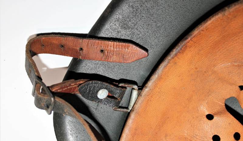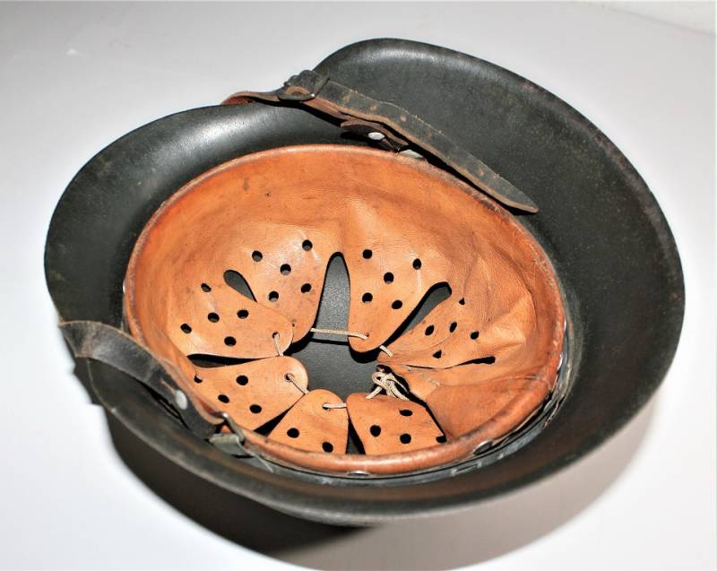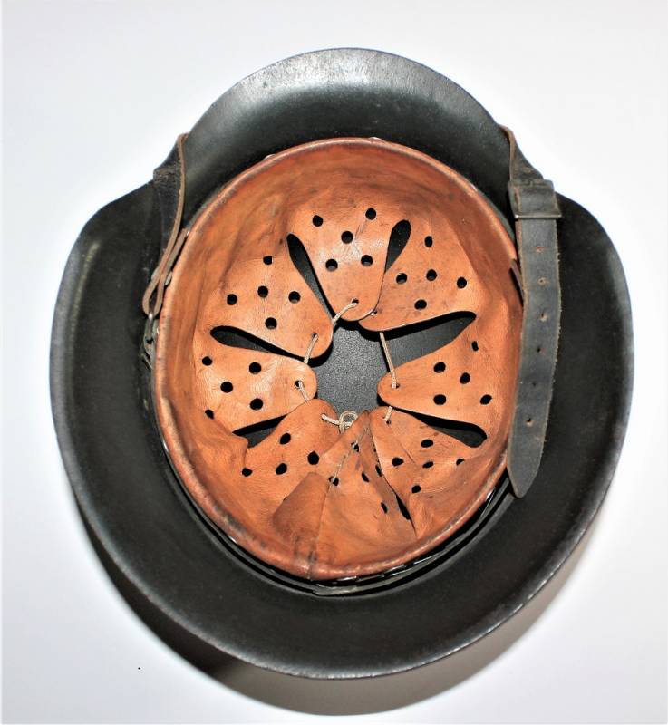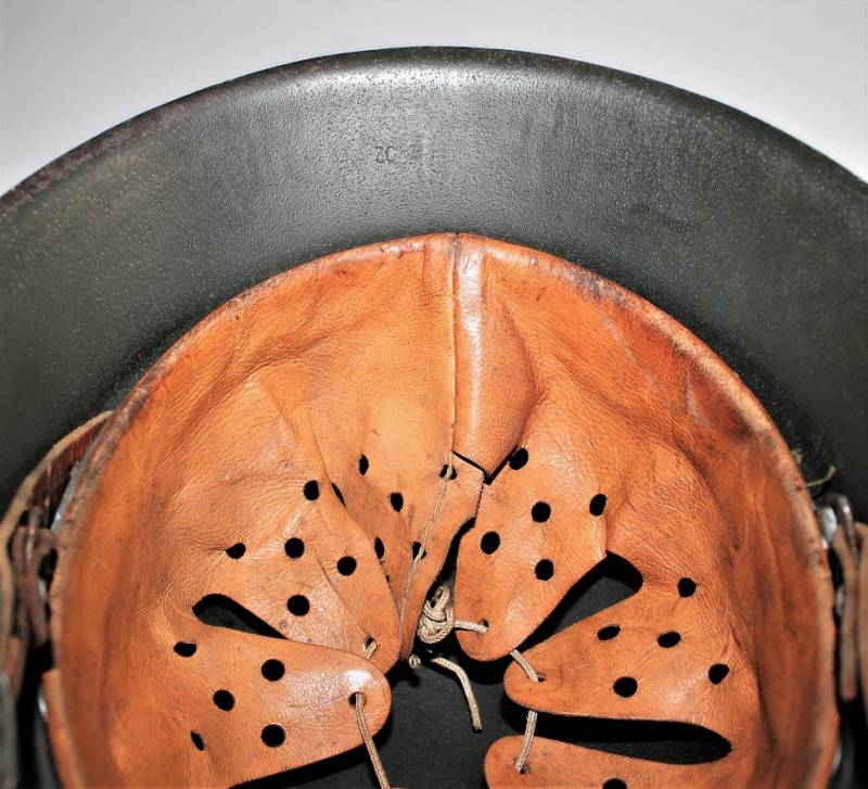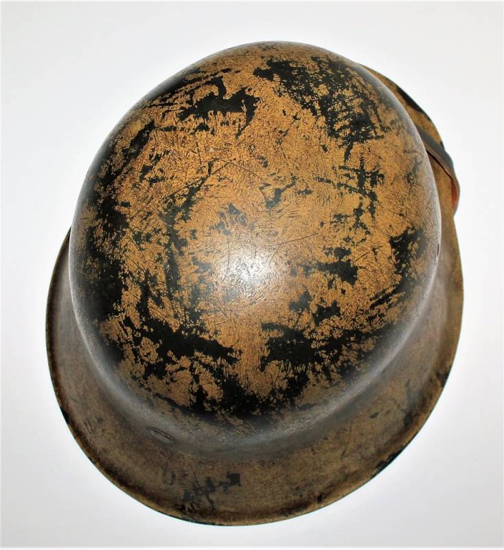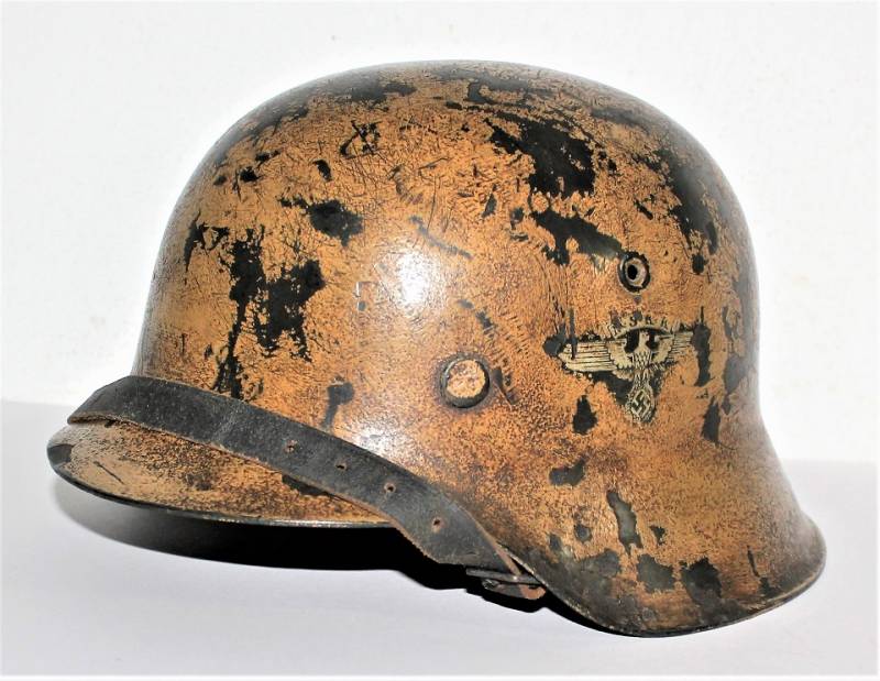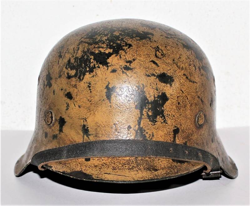 Rare helmet mod.42 singoldekal NSKK in continental yellow camouflage color, excellent condition, not restored or repaired and complete in all its parts, 80% camouflage painting, decal almost 100% only patinated by time, liner and chinstrap never disassembled with Liner skin in excellent condition and not damaged, intact chinstrap marked with manufacturer´s name and date, iron marked with manufacturer code ET62 and lot numbers, leather size 55.