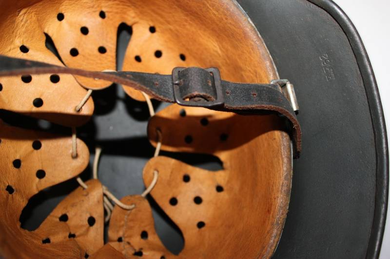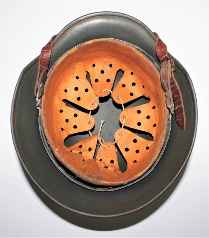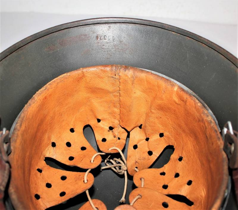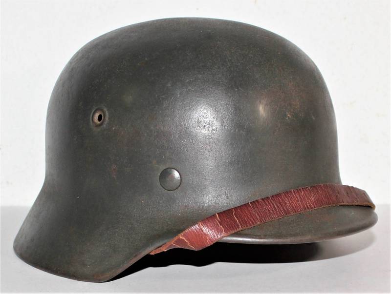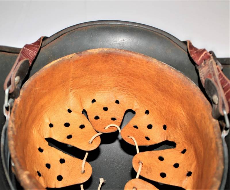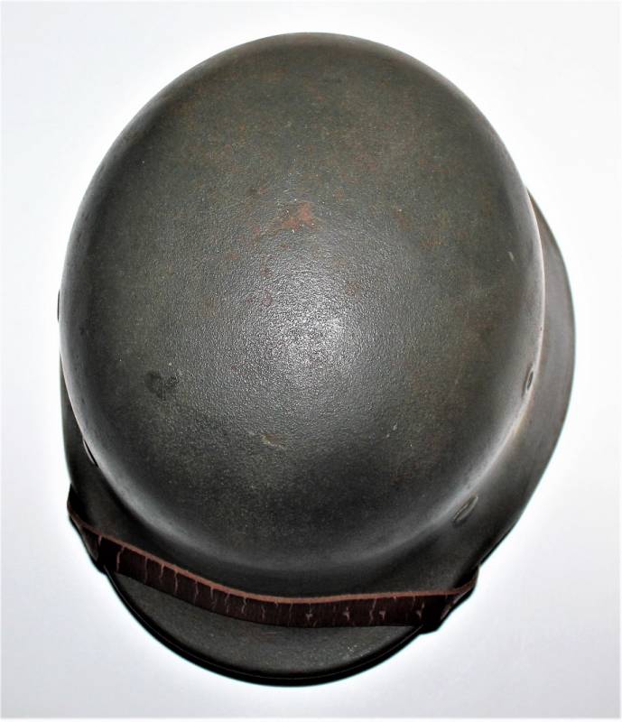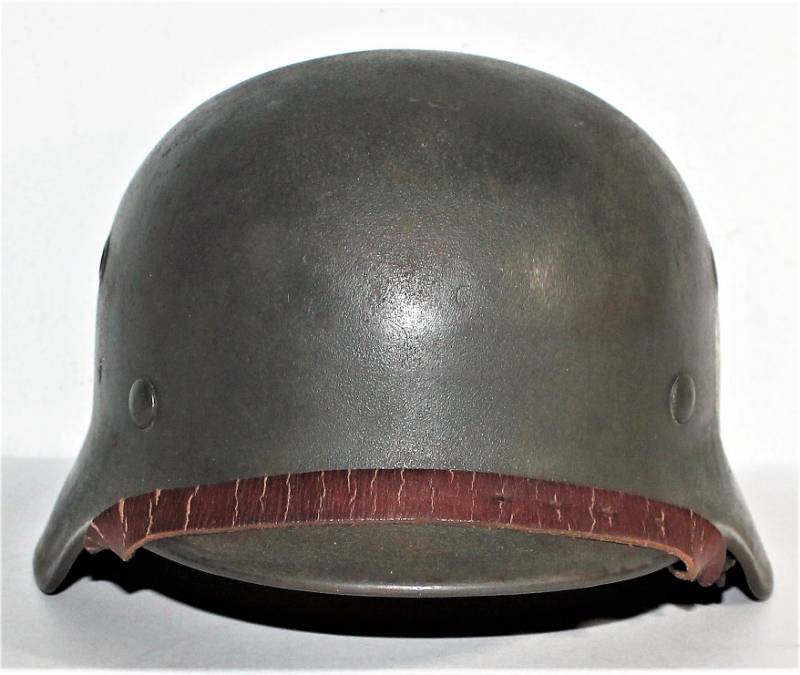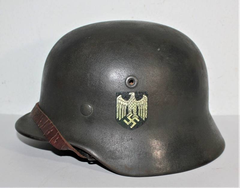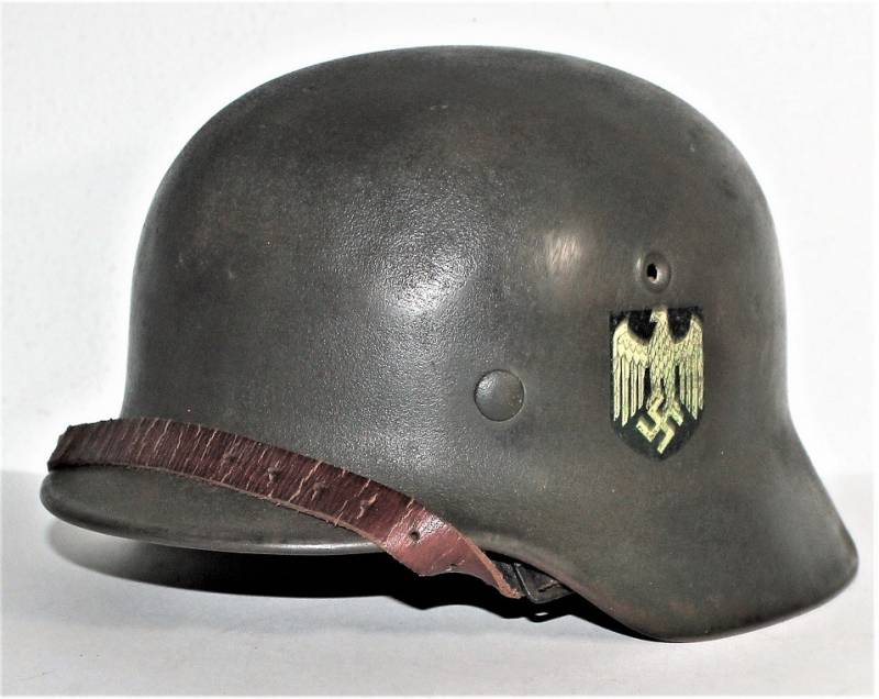 Helmet M40 singoldekal of the WH born in wrinkled feldgrau green color with 95% paint in excellent condition, with a light patina of time and use, not restored or repaired, complete in all its parts, liner and chinstrap never disassembled, liner leather in Excellent condition, still soft and not damaged, only patinated from use, chinstrap marked with the name of the manufacturer and the date 1942, decal in excellent condition 95% only lightly patinated by time, iron marked with manufacturer code E.F.62 and lot numbers, size of the skin about 55.