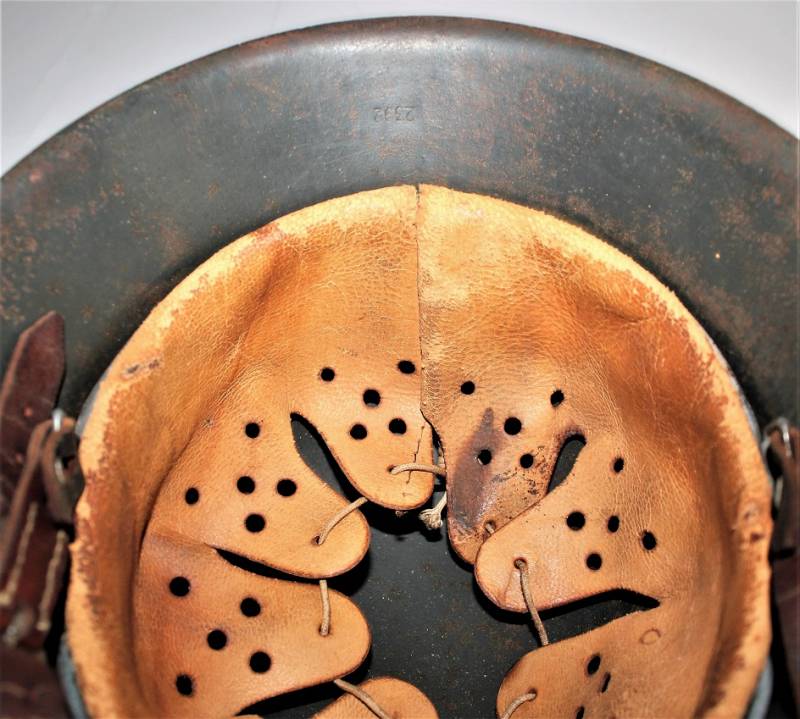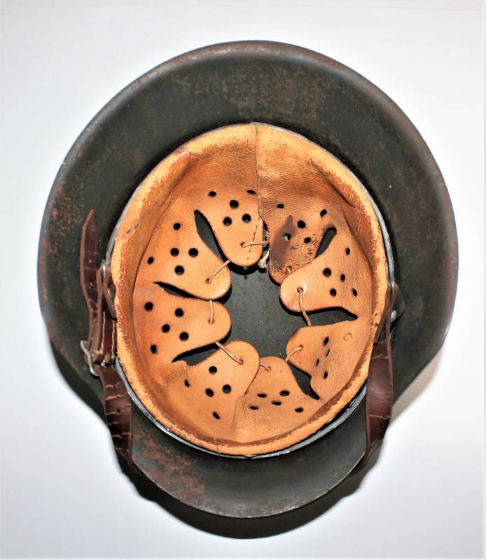 Helmet M42 singoldekal of the WH born in wrinkled feldgrau green color with 90% paint in excellent condition, with a slight patina of time and use, not restored or repaired, complete in all its parts, liner and chinstrap never disassembled, liner skin in excellent condition still soft and not damaged, only patinated from use, chinstrap marked with the manufacturer´s code and date 1943, decal in excellent condition 90% only slightly patinated by time, iron marked with manufacturer code ET62 and lot numbers, size of the skin about 55.