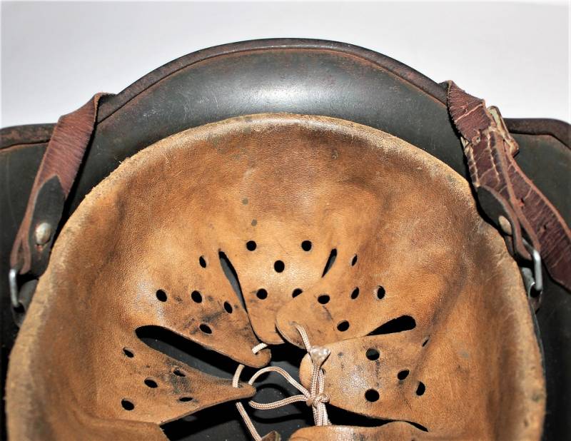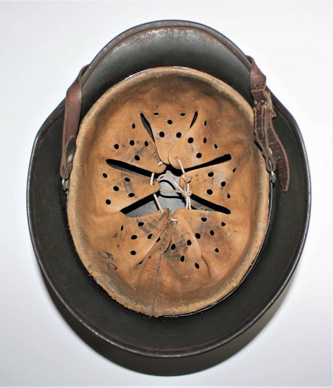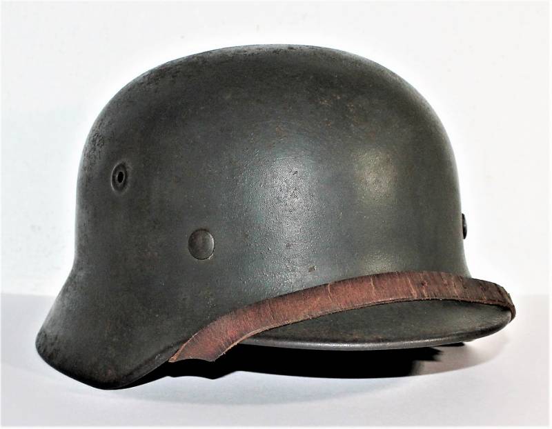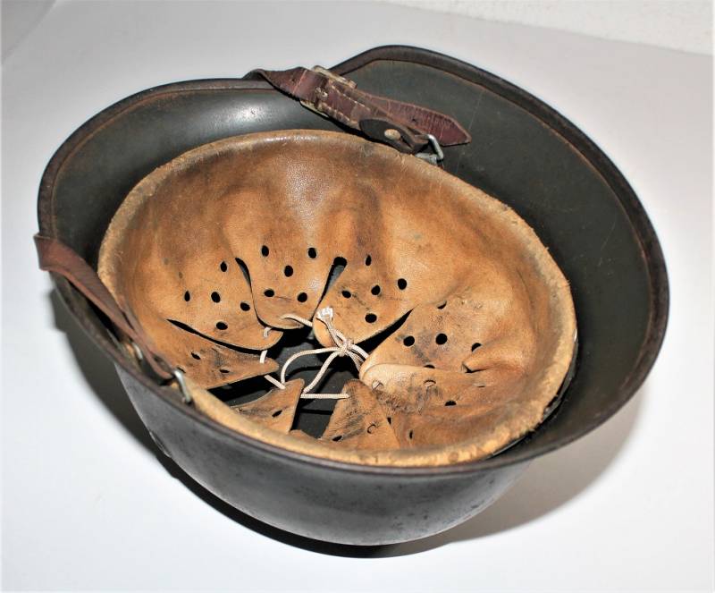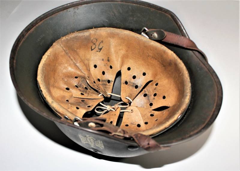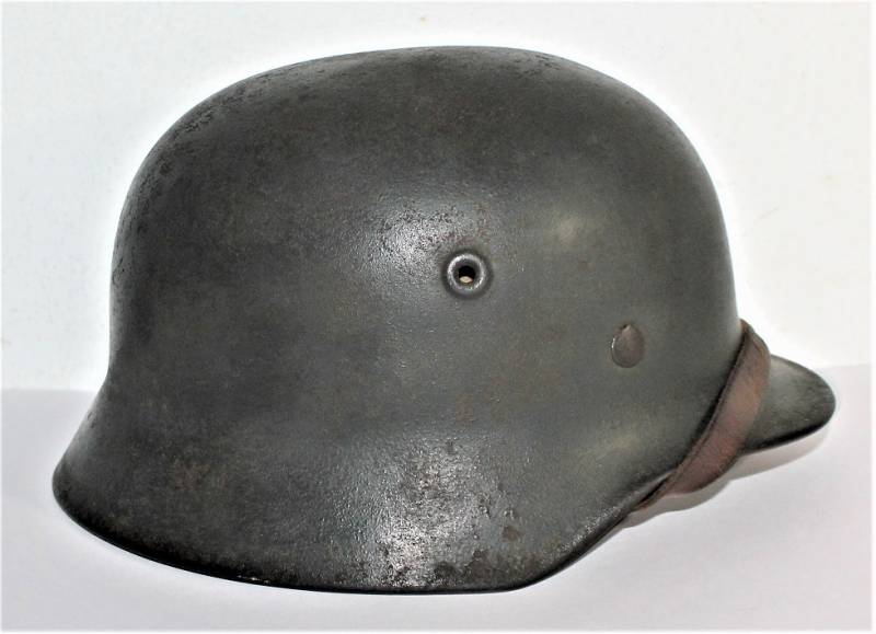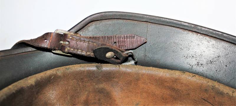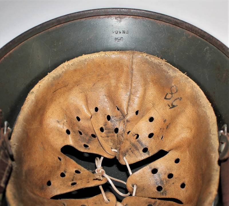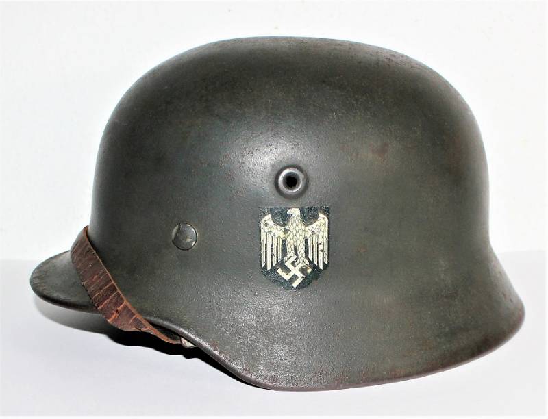 Helmet M40 singoldekal of the WH born in wrinkled feldgrau green color with 90% paint in excellent condition, with a light patina of time and use, not restored or repaired, complete in all its parts, liner and chinstrap never disassembled, liner skin in excellent condition, still soft and not damaged, only patinated from use, chinstrap marked with the name of the manufacturer and the date 1940, decal in excellent condition 90% patinated only by time, iron marked with manufacturer code Q64 and lot numbers, leather size about 58.