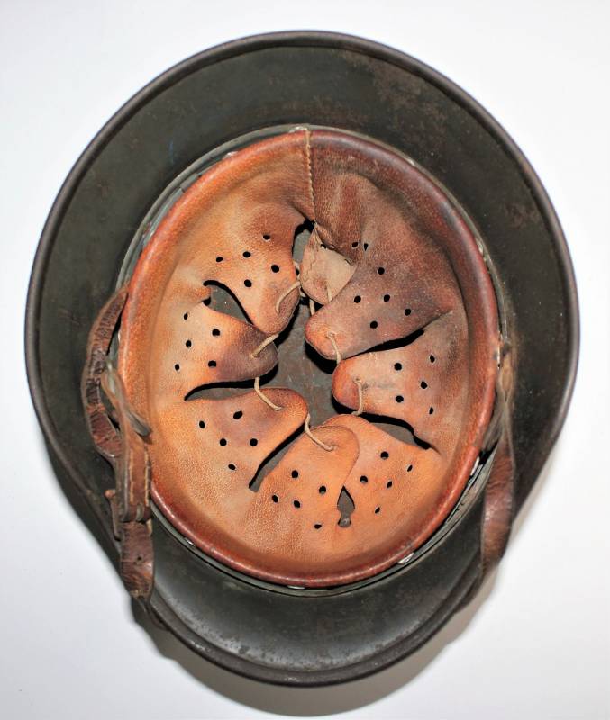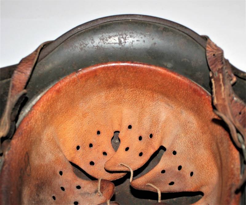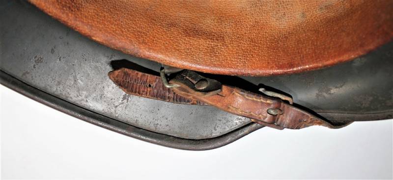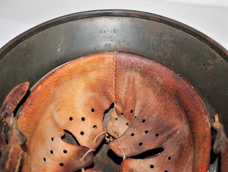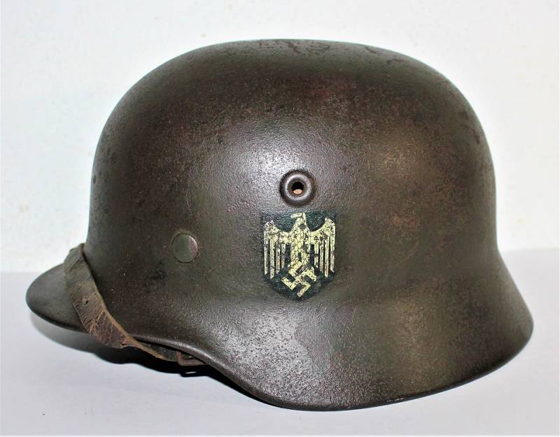 Helmet M40 sinfoldekal of the WH born in wrinkled feldgrau green color with 80-85% paint in good condition, with patina of time and use, not restored or repaired, complete in all its parts, liner and chinstrap never disassembled, leather of the liner in good condition, slightly dry but not damaged, only patinated by use, chinstrap marked with RBN n ..., decal in good condition 85% with age patina, iron marked with manufacturer code Q64 and lot numbers, size of the skin about 57.