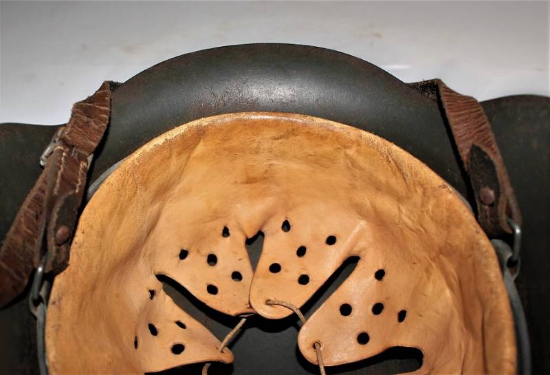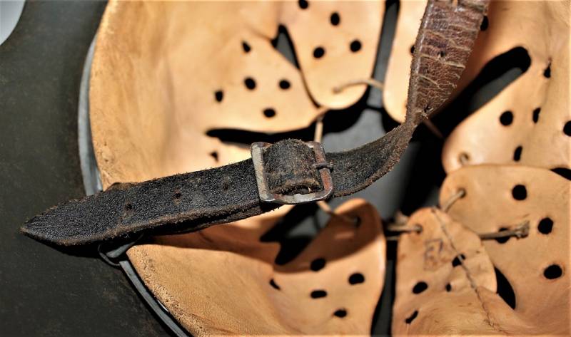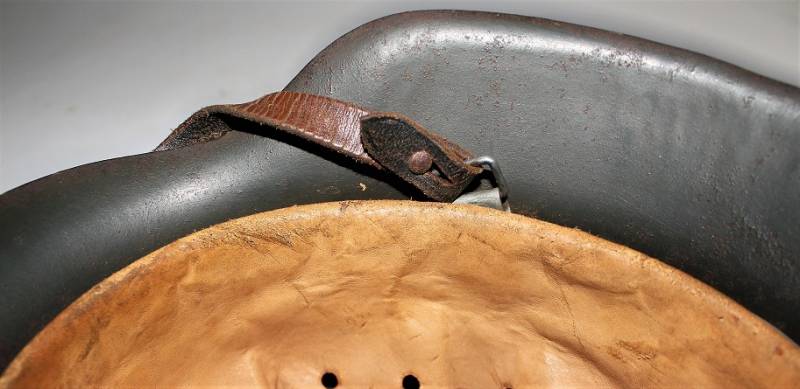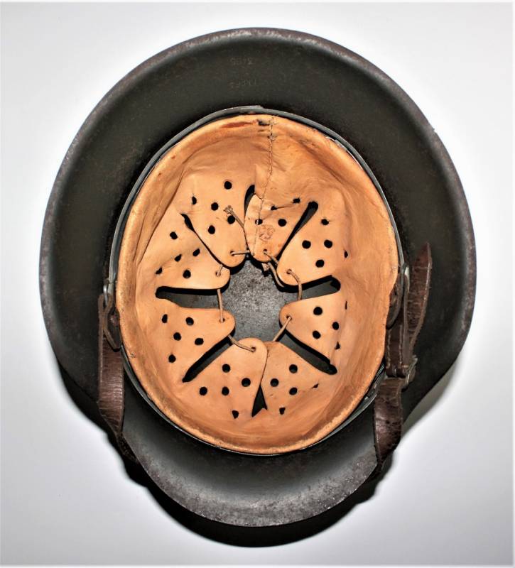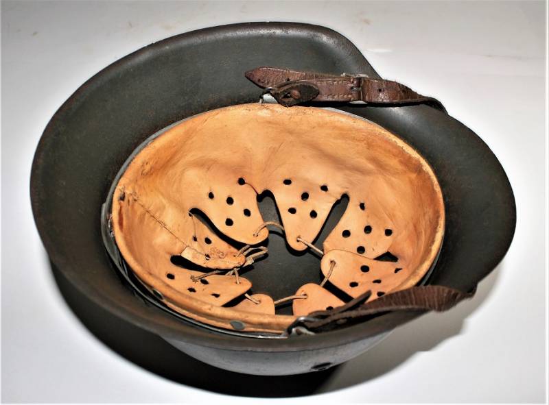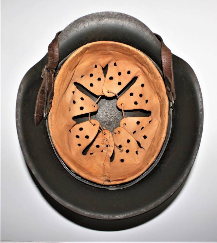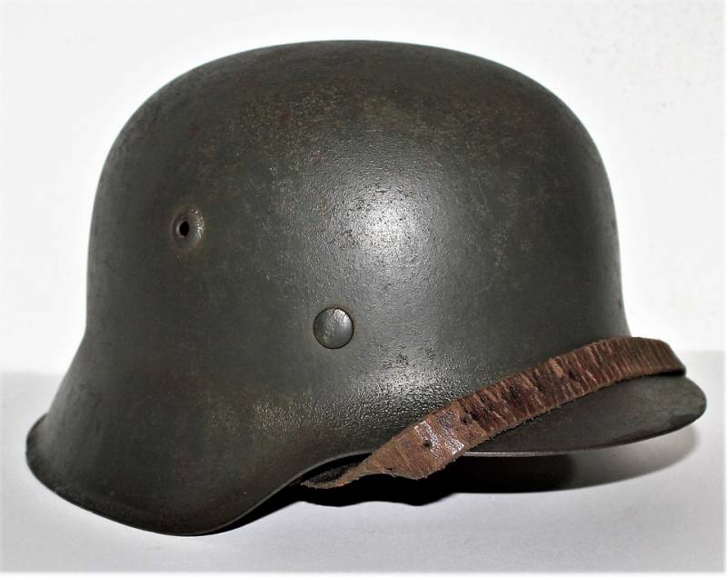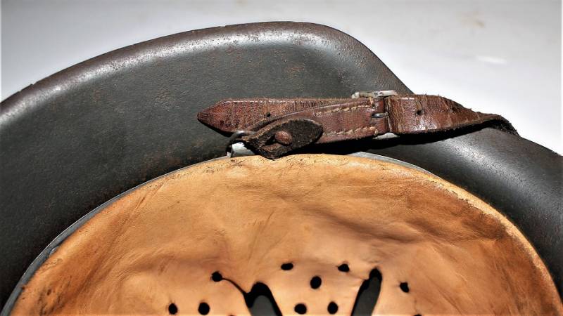 Beautiful helmet M42 monodekal of Kriegsmarine in excellent condition, not restored or repaired, never disassembled, complete in all its parts, all with light patina of time and use, green paint feldgrau wrinkled 90%, decal 95% yellow gold tipical Navy with little patina, leather of the liner in very good condition, still very soft and not damaged, only patinated by use, on the chinstrap the manufacturer´s trademark can be glimpsed. Iron marked with lot number and iron size 64. Skin size 57. Original 100% WWII period.