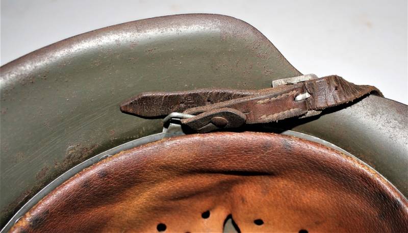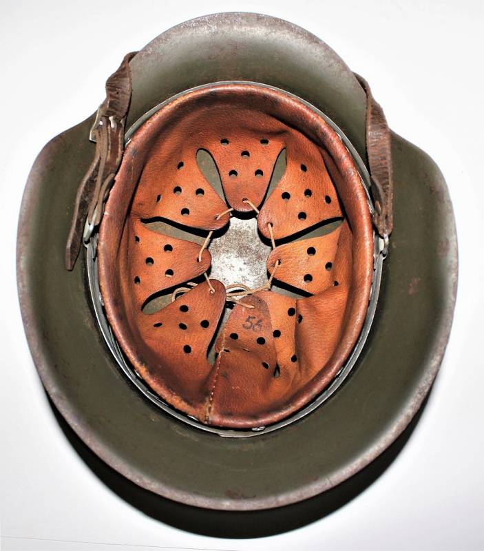 Beautiful helmet mod.42 of the WH monodekal in excellent condition, complete in all its parts, paint wrinkled at 95%, dekal wonderful almost 100% slightly yellowed by time, liner and chinstrap never disassembled, not restored or repaired , skin of the liner and of the not damaged chinstrap still in excellent condition, all with patina of the time and of the use. Iron marked with manufacturer code, lot number and size 64, leather size 56, chinstrap marked with the manufacturer´s name and date 1942. Original 100% WWII period.