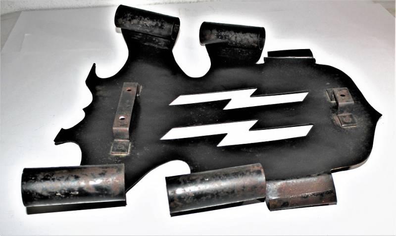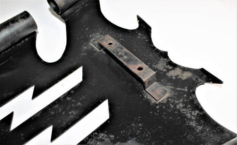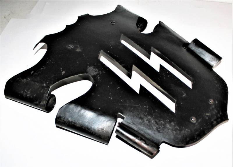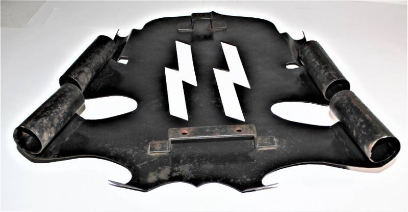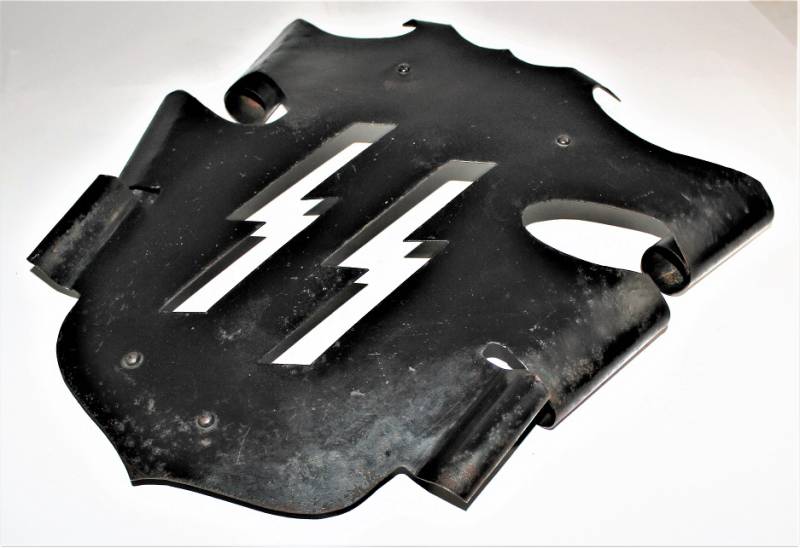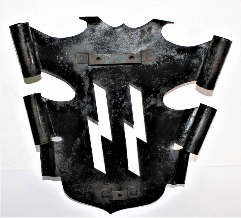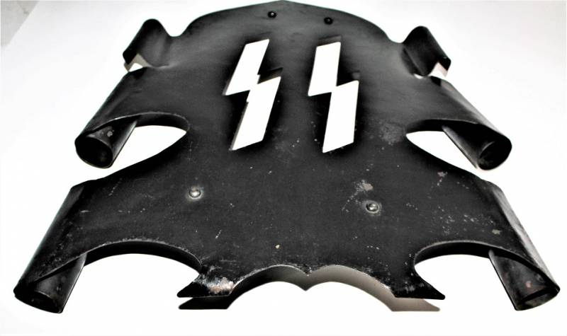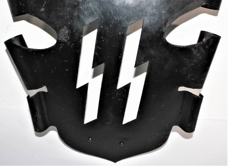 Rare and beautiful wall crest-shield for SS barracks made of hand-forged sheet metal and painted in black, good condition, only patina of time and use and small patches of rust, but the color is about 80%. Measures approximately 42x31. Very rare and original 100% WWII period.