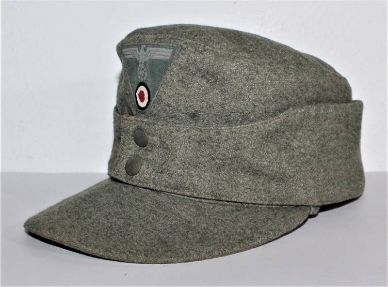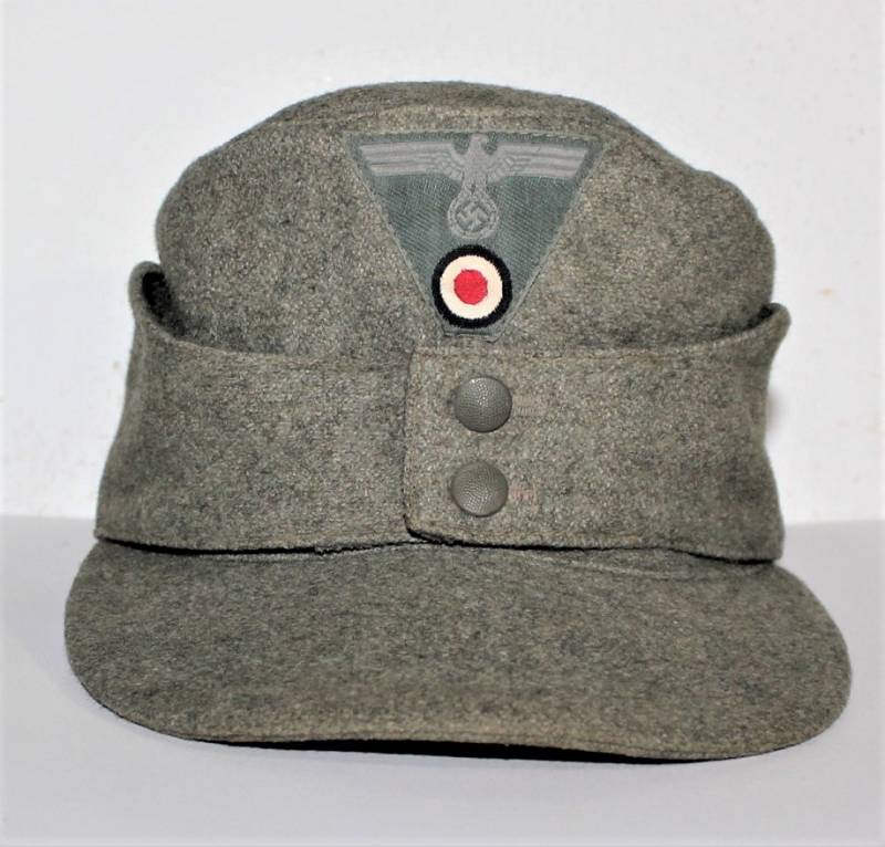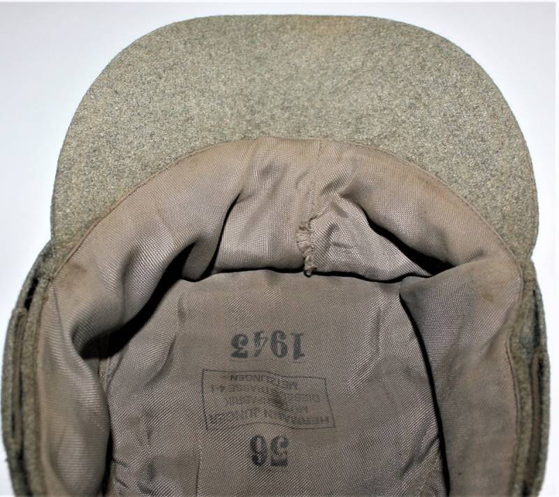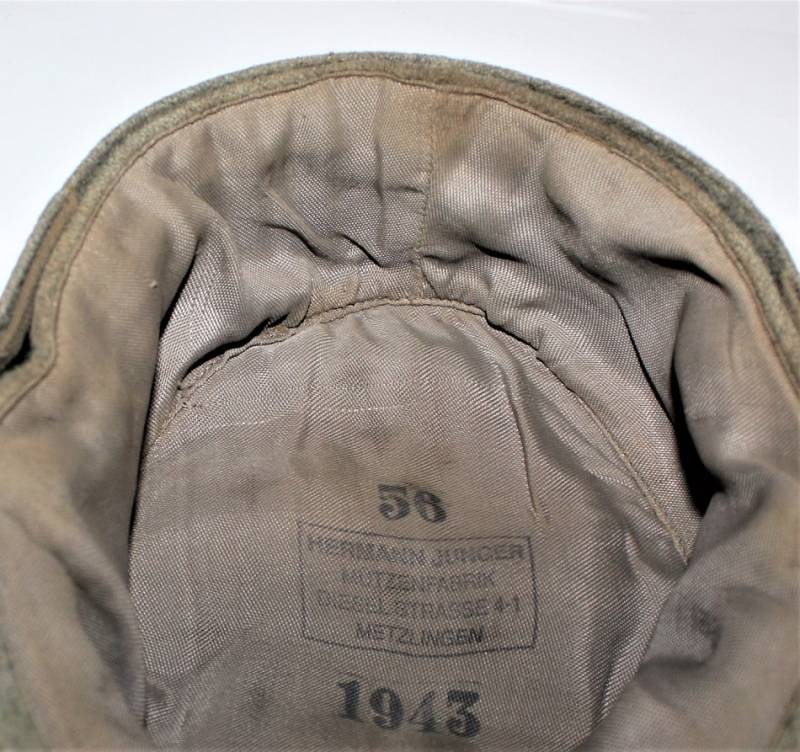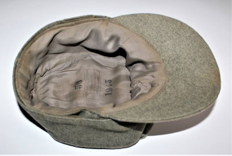 Field cap M43 WH, made of feldgrau wool, very good condition, light signs of time and use, not restored or repaired, perfect seams, small lesion on the front of the inner lining, M43 regulatory eagle insigna mounted in vintage and machine stitched. Internally marked with manufacturer name, date 1943 and size 56. Original 100% WWII period.