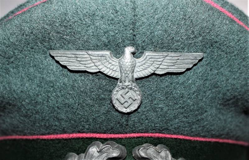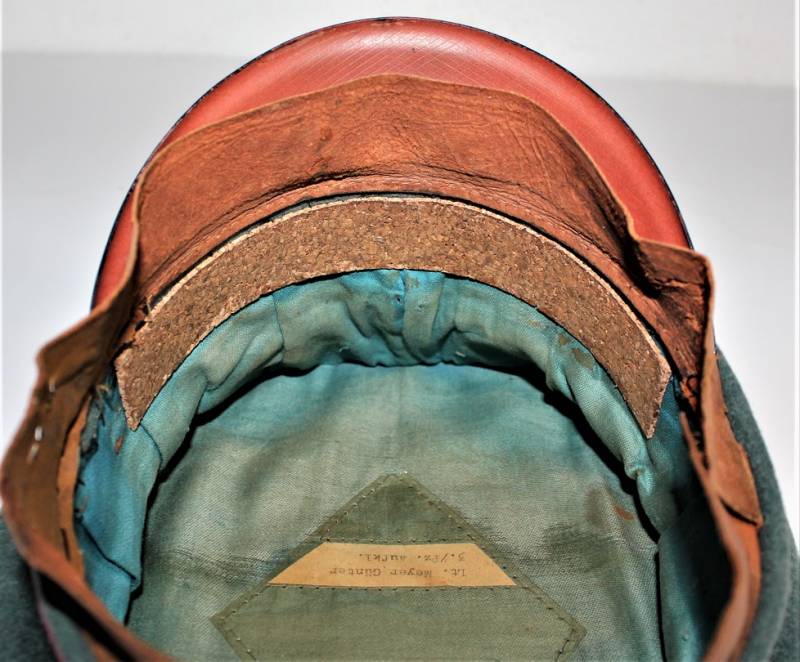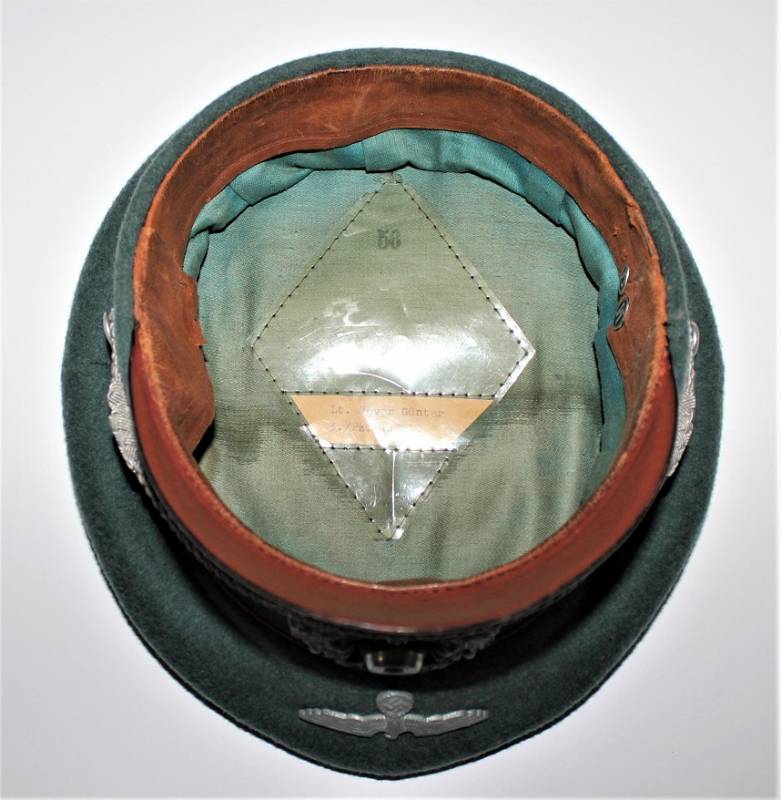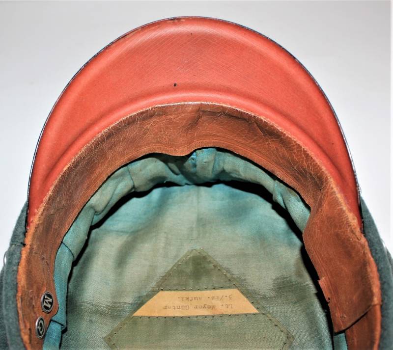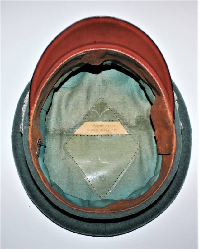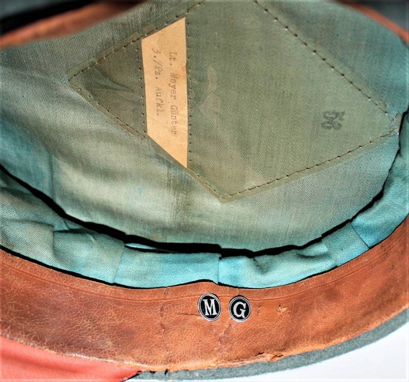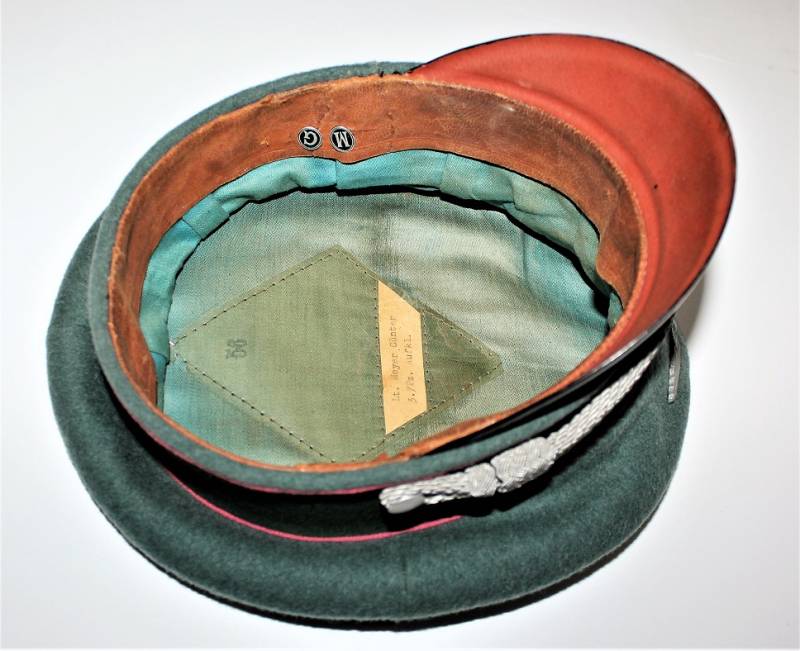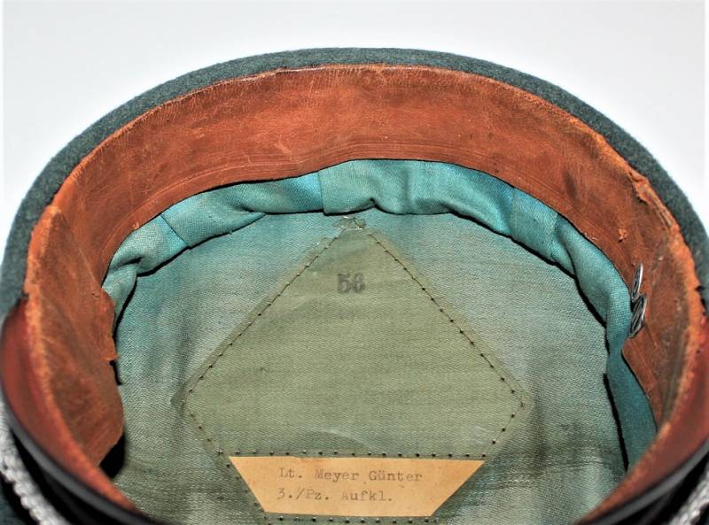Beautiful Officer schirmmutze WH Panzer in excellent condition, with slight signs of time and use, unrestored or repaired, complete in all its parts, without holes or tears, an eagle attack is broken, insigna mounted in the era, internally complete with celluloid diamond with size number 56 and paper label with the soldier´s name (Lt. Meyer Gunter 3/Pz.Aufkl.Abt.12, decorated with a Knight´s cross on 05.03.1945). Original 100% WWII period.