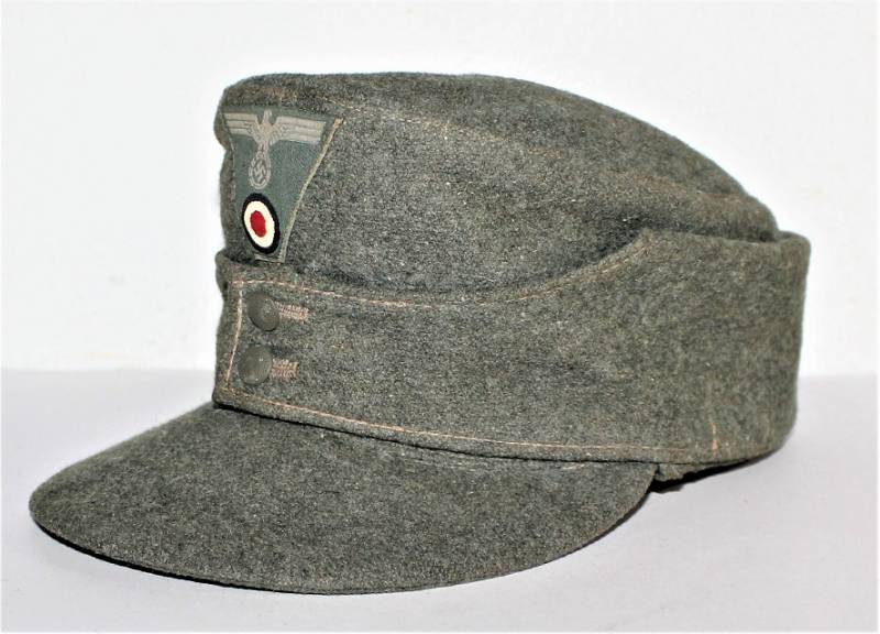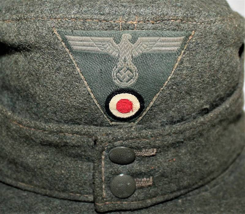 Field cap M43 NCO of the WH, born in feldgrau wool fabric, excellent condition, light signs of aging and use, not restored or repaired, without holes or tears, perfect seams, M43 regulatory insigna mounted in era and machine-sewn.