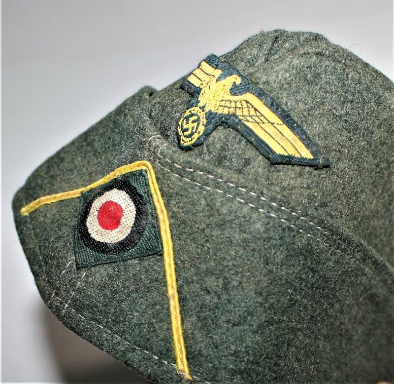 Service cap NCO mod. 40 KRIEGSMARINE of the Coast Artillery, born in feldgrau wool cloth in excellent condition almost like new, only with very light patina of time, complete in all its parts, without holes or tears and perfect seams, insigna mounted in vintage and yellow waffenfarbe transmissions. Internally marked with manufacturer name and size 56. Original 100% WWII period.