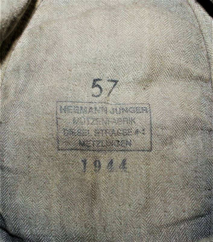 The cap is internally marked with the manufacturer´s name, date 1944 and size 57. Original 100% WWII period.
