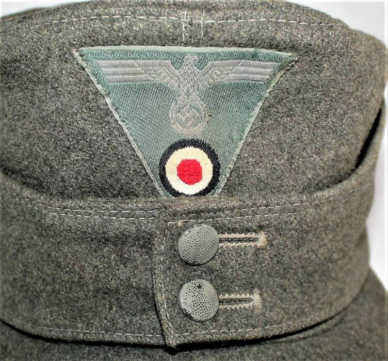 Field cap M43 AM NCO of the WH, born in feldgrau wool fabric, excellent condition, light signs of aging and use, not restored or repaired, without holes or tears, perfect seams, M43 regulatory insigna mounted in era and machine-sewn.