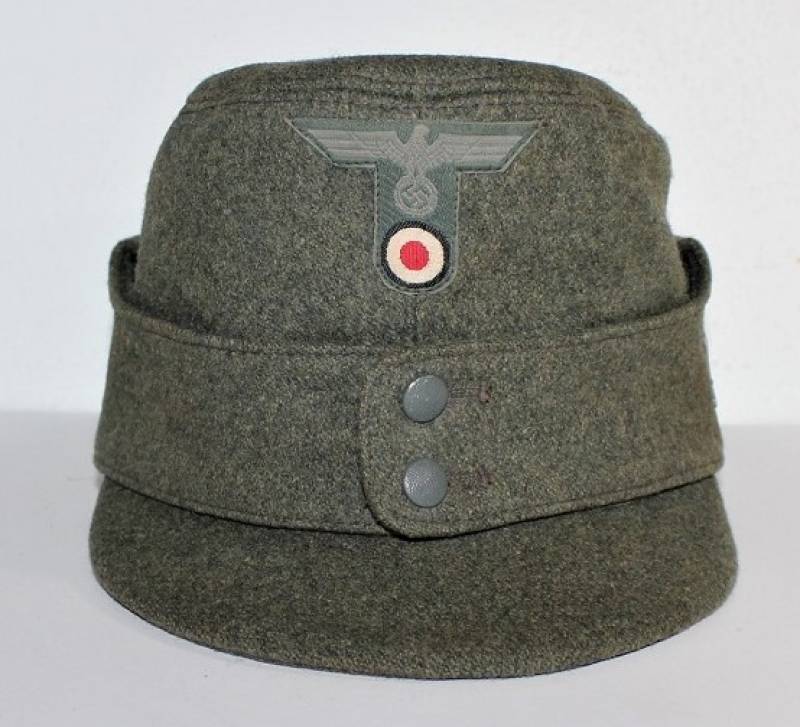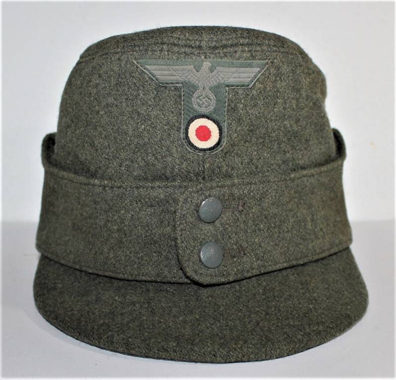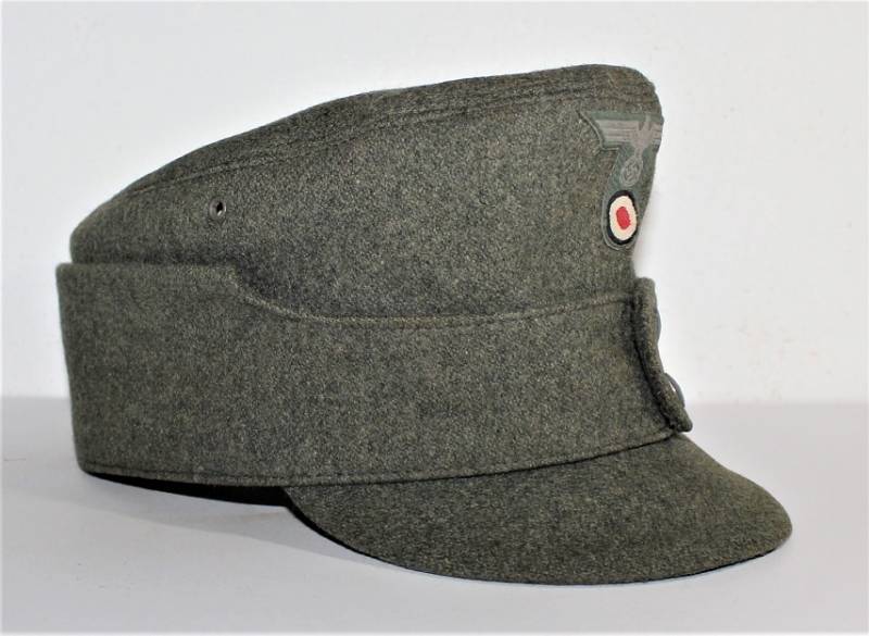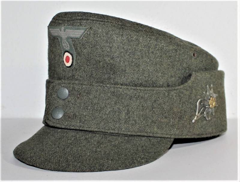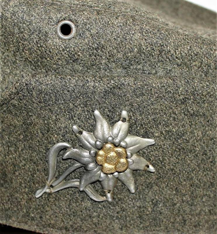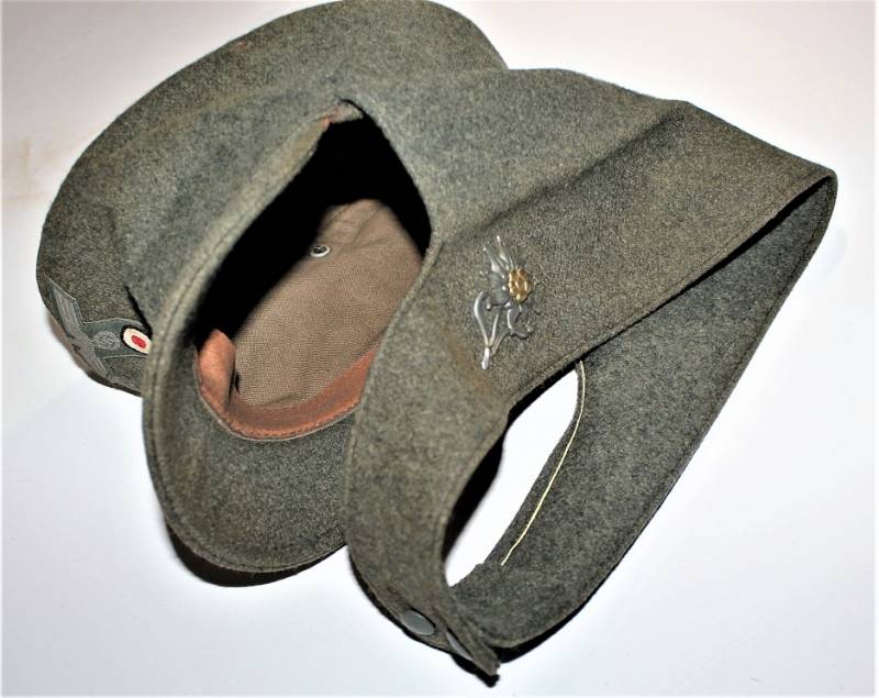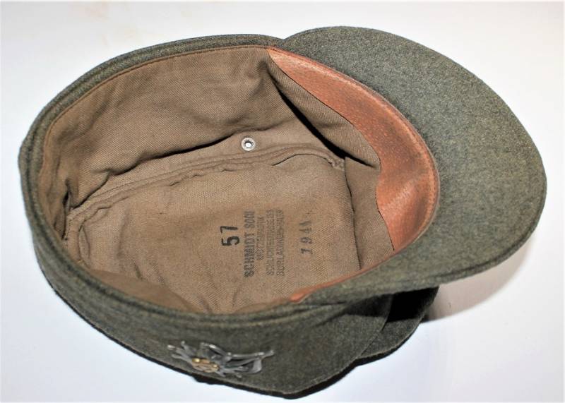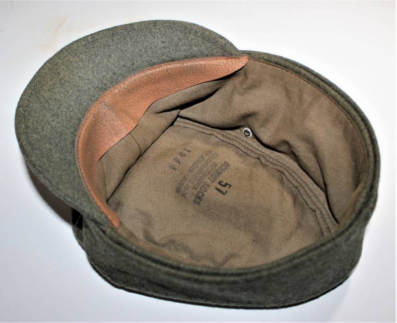 Field cap M41 Gebirgsjäger in excellent condition, complete in all its parts, not restored or repaired, without holes or tears, perfect seams, insignas mounted in the era, only light patina of time and use, regulatory construction for Gebirgsjäger cap. Internally marked with manufacturer, date 1944 and size 57. Original 100% WWII period.