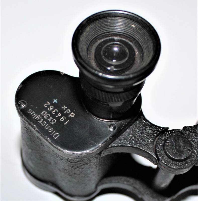 Binoculars 6x30 DDX supplied WH-LW-SS in excellent condition, complete in all its parts, not restored or repaired and never dismantled, good lenses, clear view, complete with reticle, all with a slight patina of time and use, born in 95% grainy black paint. Original 100% WWII period.