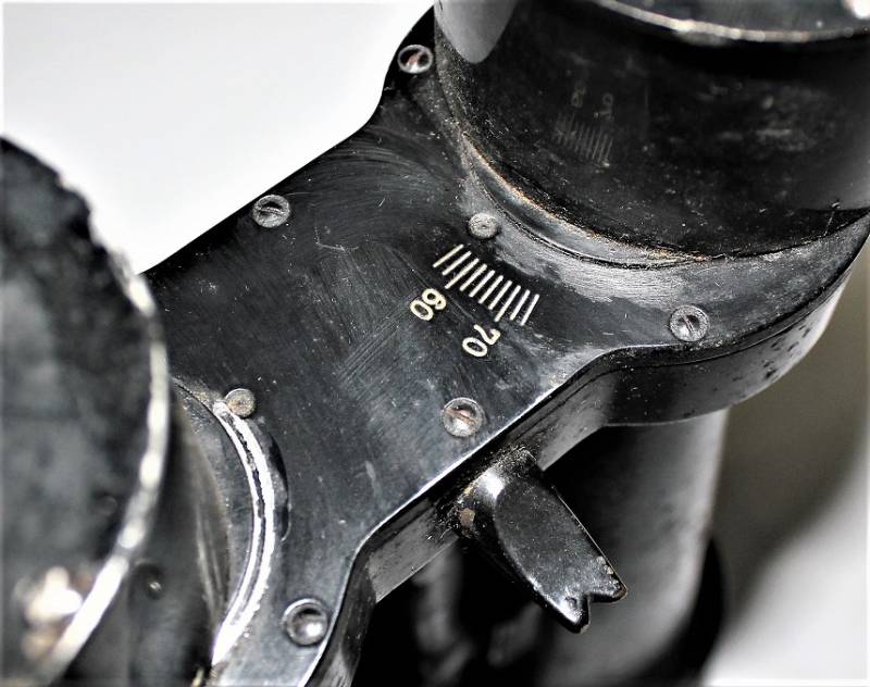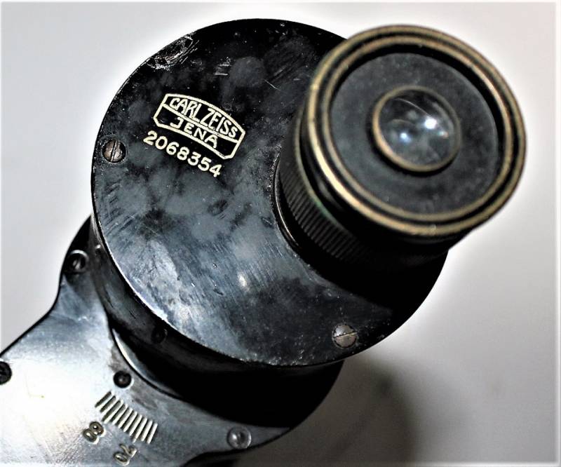Long focal binocular produced by the company CARL ZEISS JENA, the binoculars are of the support type, beautiful external conditions, lenses not broken or tilted, but very opaque, visibility is not good, adjustment of the working focal length. Original 100% WWII period.