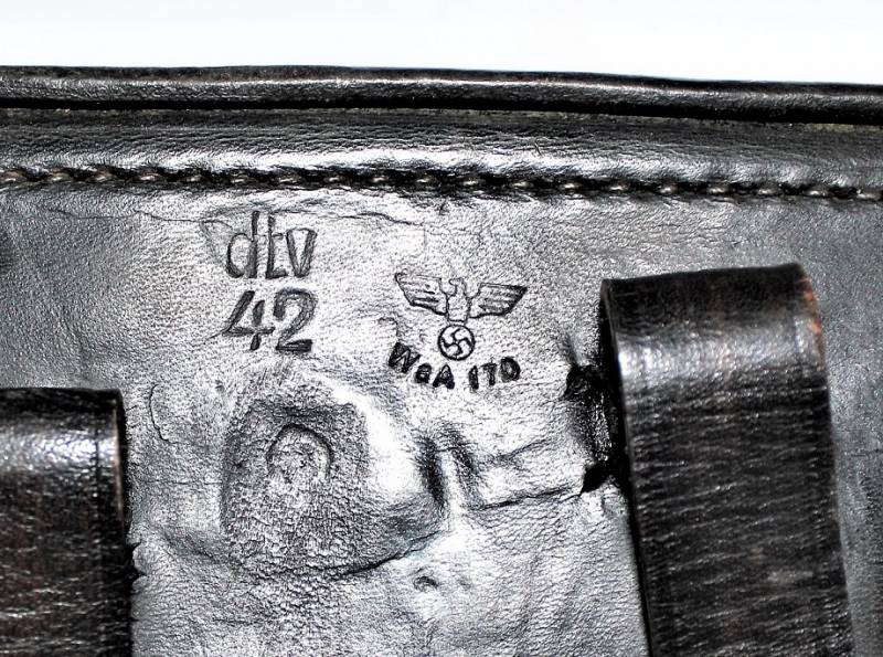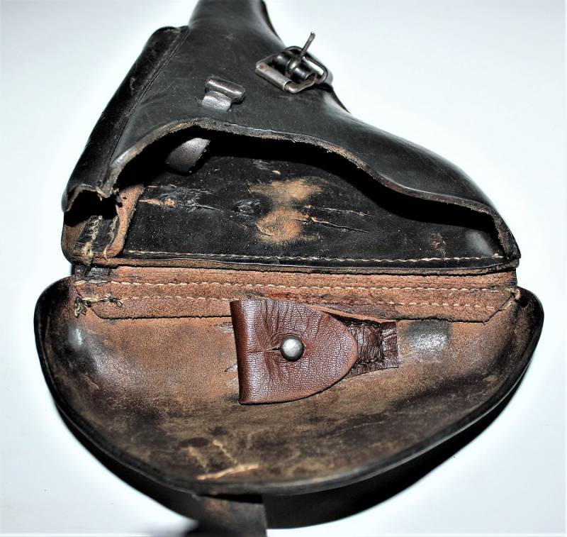 Holster for Luger P08 in good condition, with patina of time and use, excellent leather and perfect stitching, restored the rear loops and replaced, marked with manufacturer code, date 1942 and waffenamnt. Original 100% WWII period.