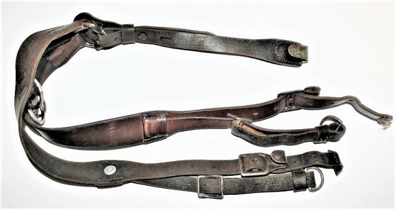 Regulatory "Y" shoulder straps supplied to all WH-SS-LW departments, good condition little used, in good conservation with only patina of time and use, healthy skin not damaged, perfect seams, not restored or repaired, complete in all its parts, marked with manufacturer code and year 1940. Original 100% WWII period.