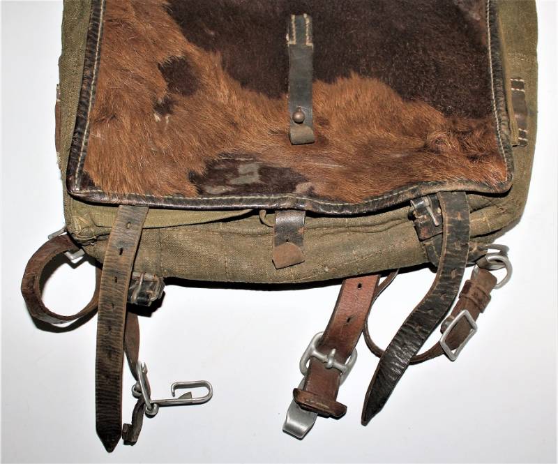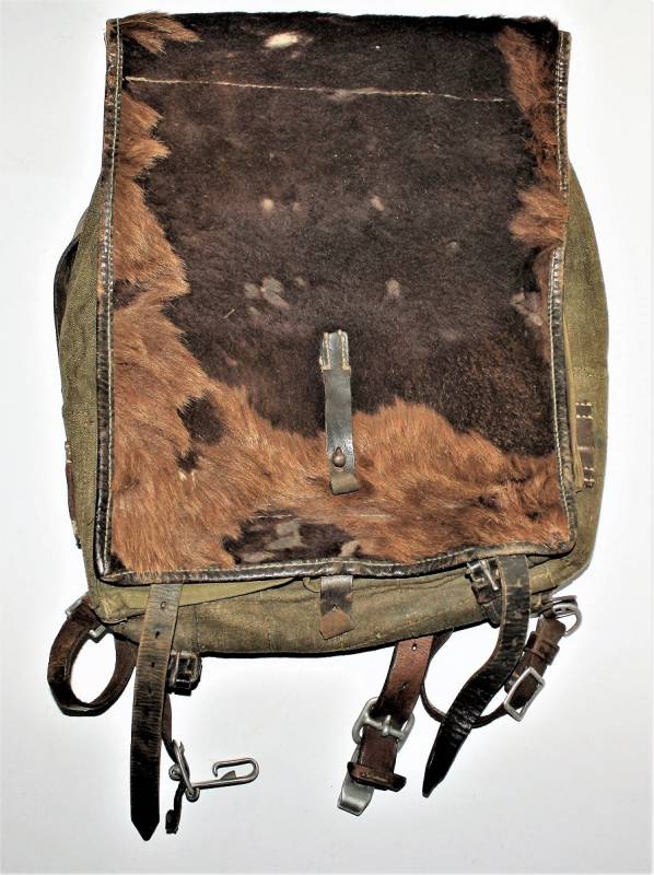 Zaino in cavallino M34 in ottime condizioni, completo in tutte le sue parti compreso il cinturino, con una leggera patina del tempo e dellŽuso, marcato sul retro con nome del produttore e data 1939. Periodo originale 100% WWII.