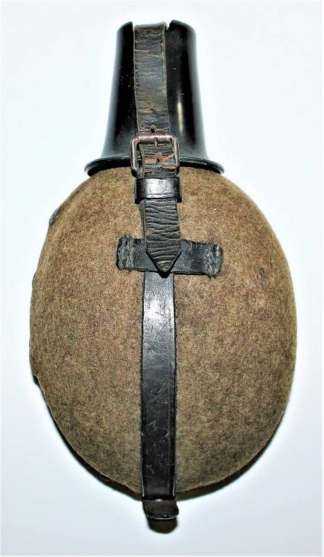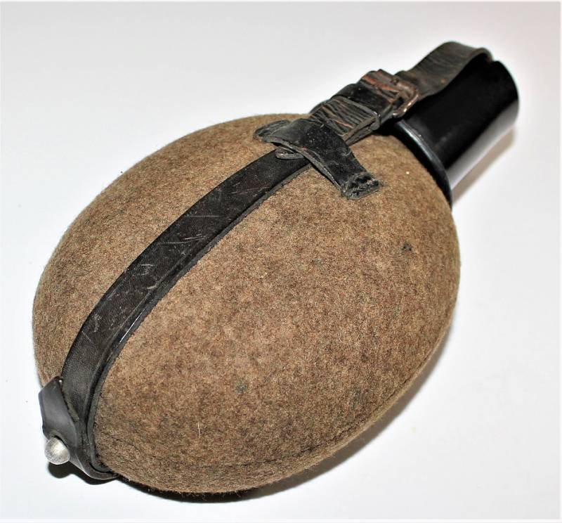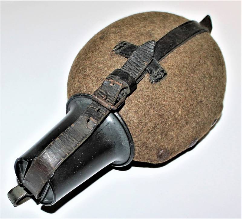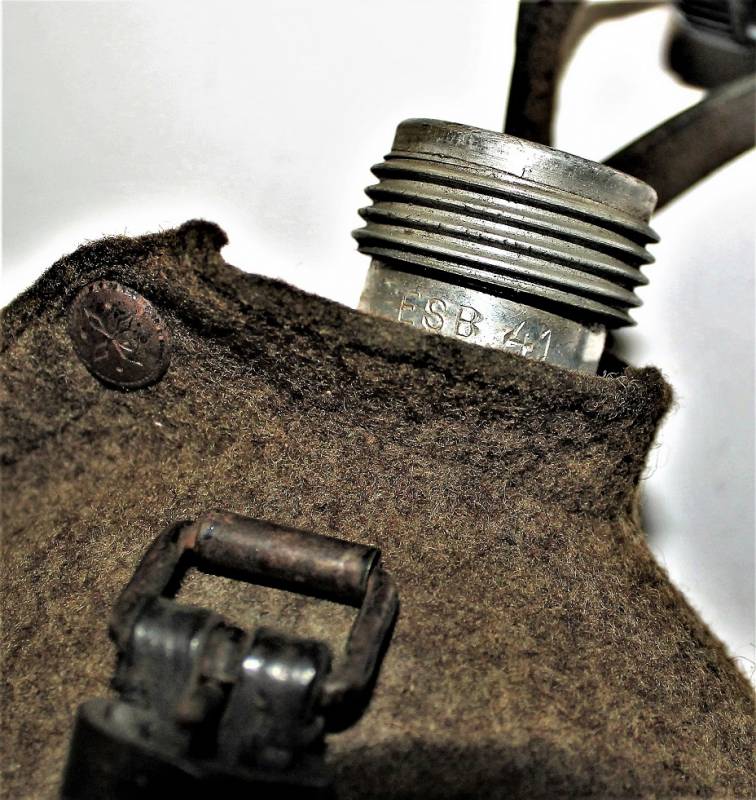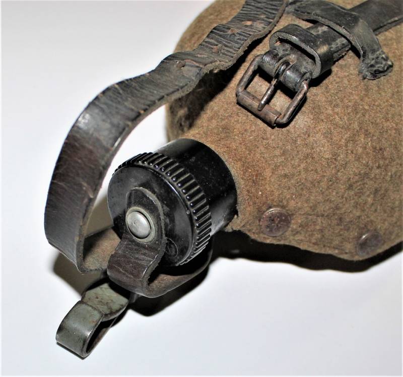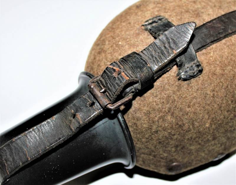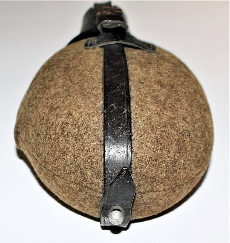 WH-LW-SS bottle in good condition, with patina of time and use, not restored or repaired, complete with leather strap, marked with manufacturer and date. 100% original WWII period.