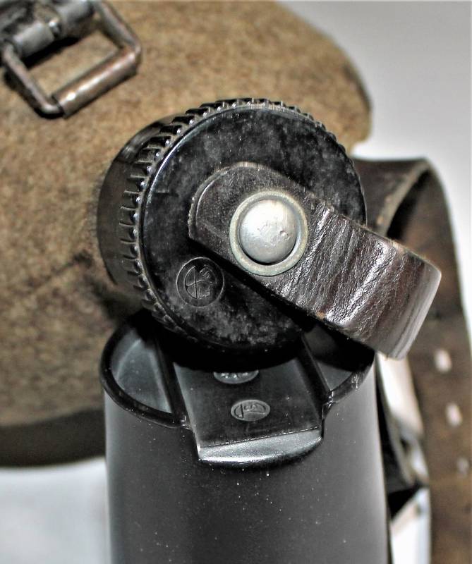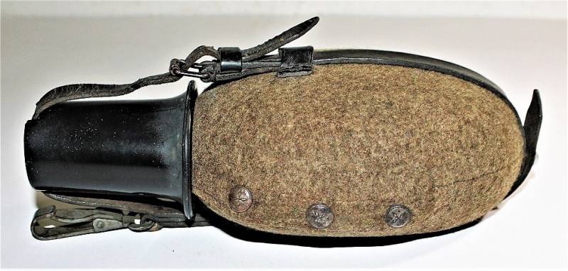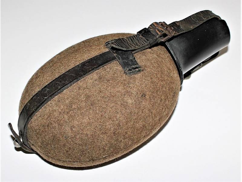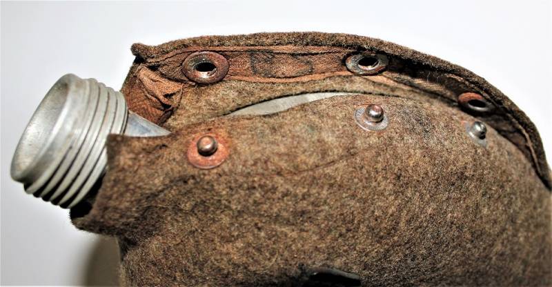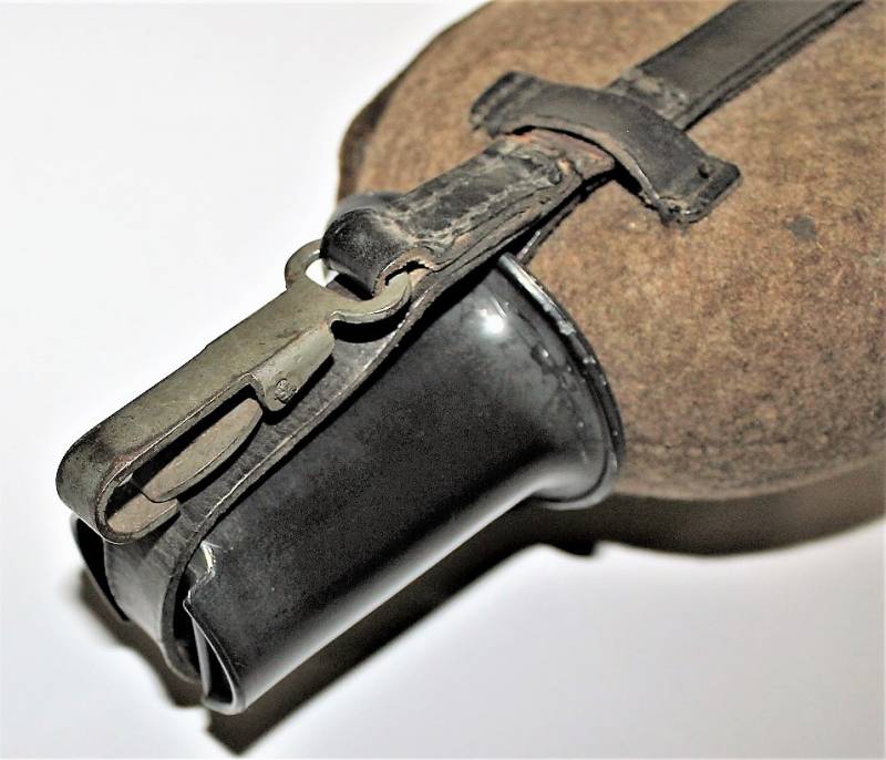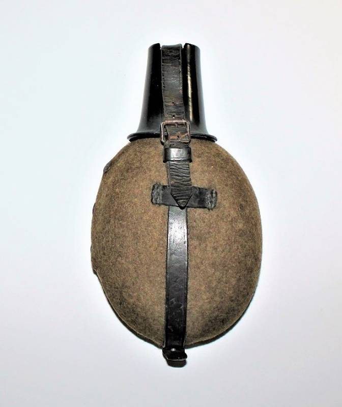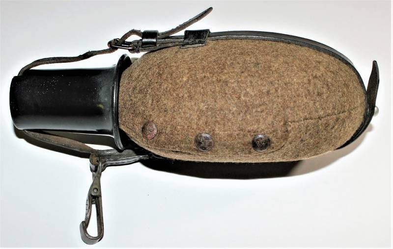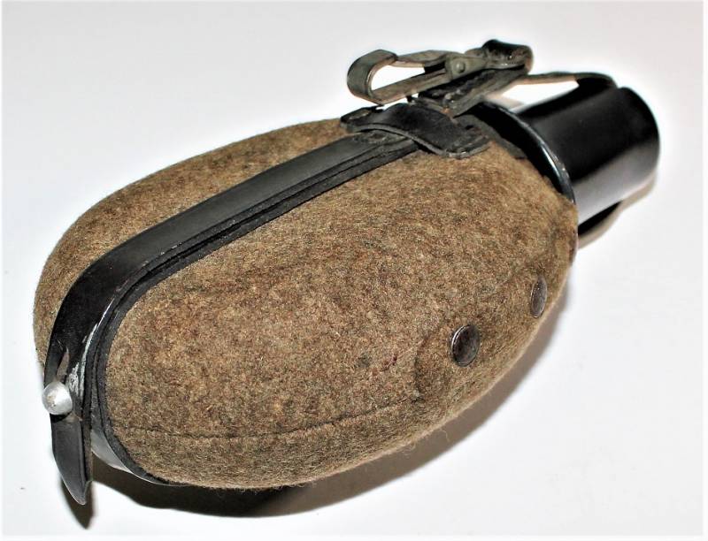 WH-LW-SS bottle in good condition, with patina of time and use, not restored or repaired, complete with leather strap, marked with manufacturer and date. 100% original WWII period.