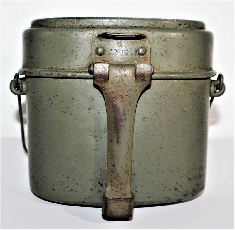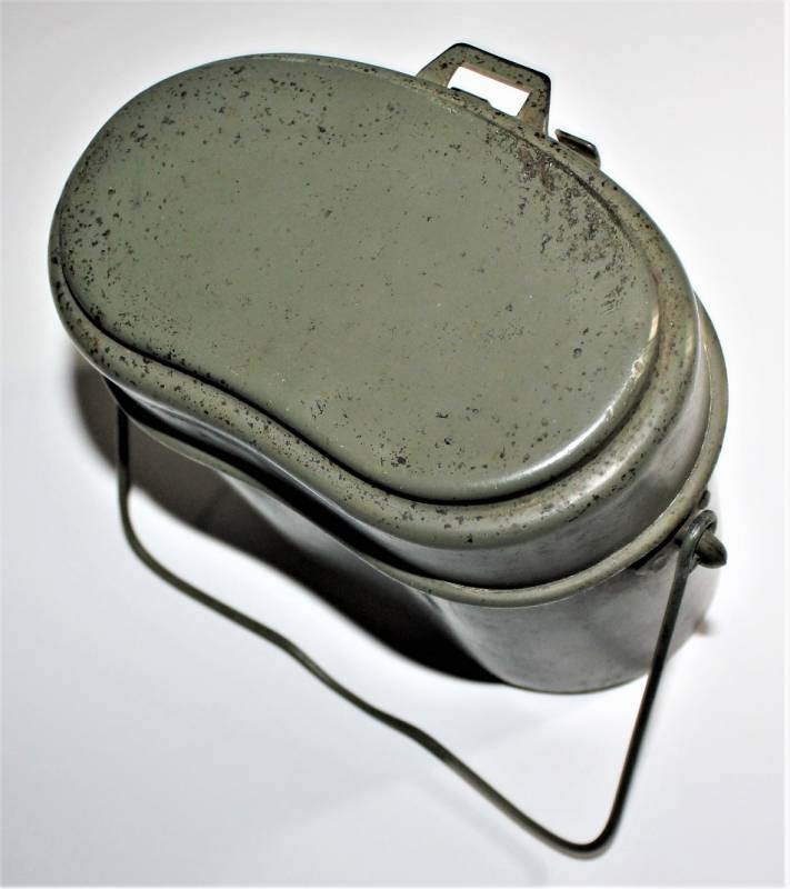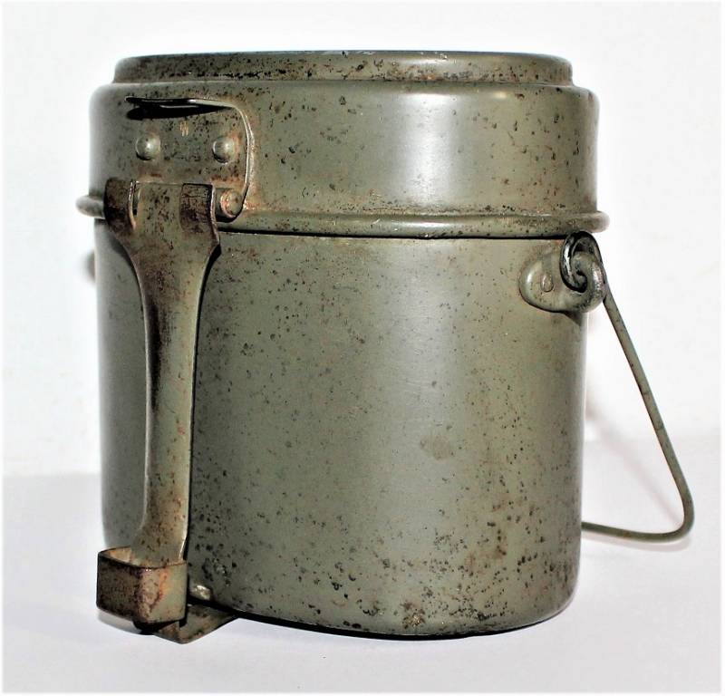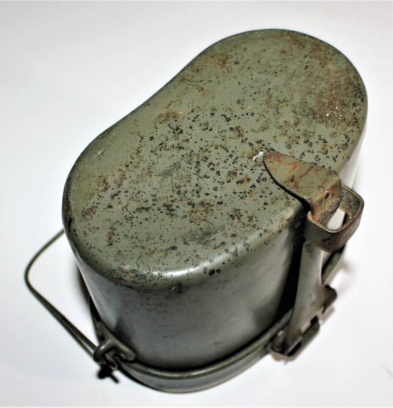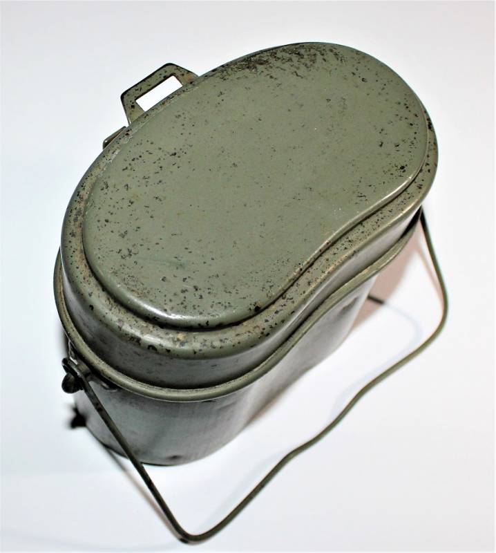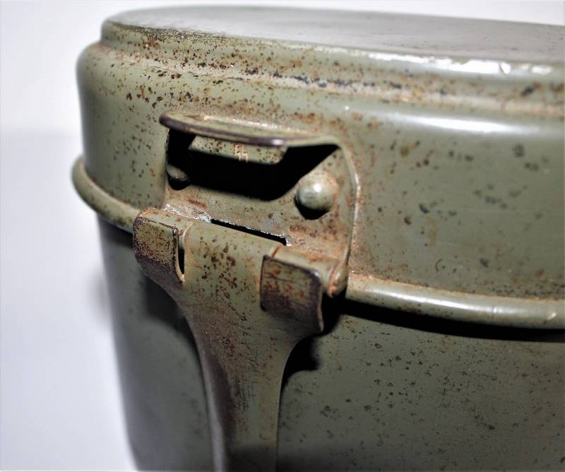 Rare M31 mess tin born in 90% 1st type light green color, complete in all its parts, not restored or repaired, with slight signs of aging and use, marked with manufacturer code and W.SS. 100% original WWII period.