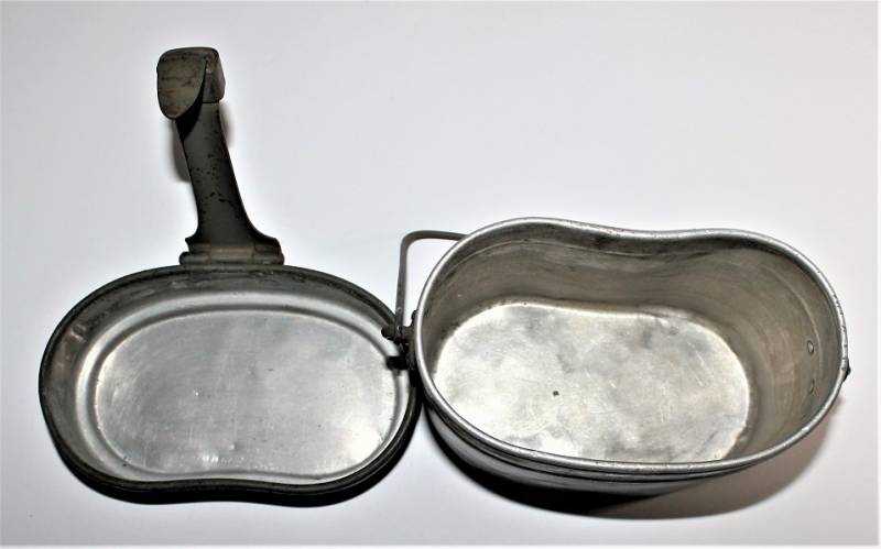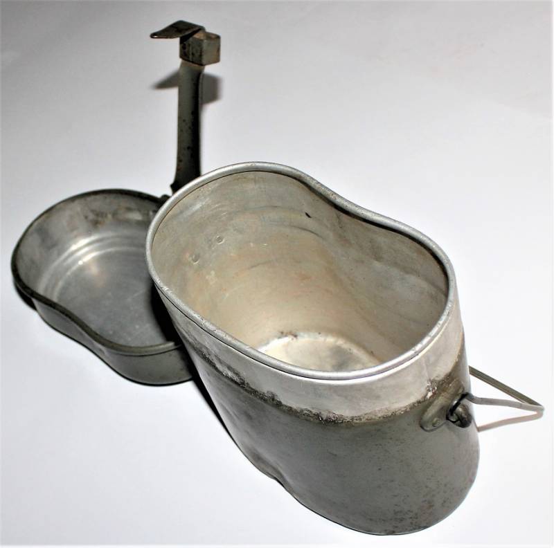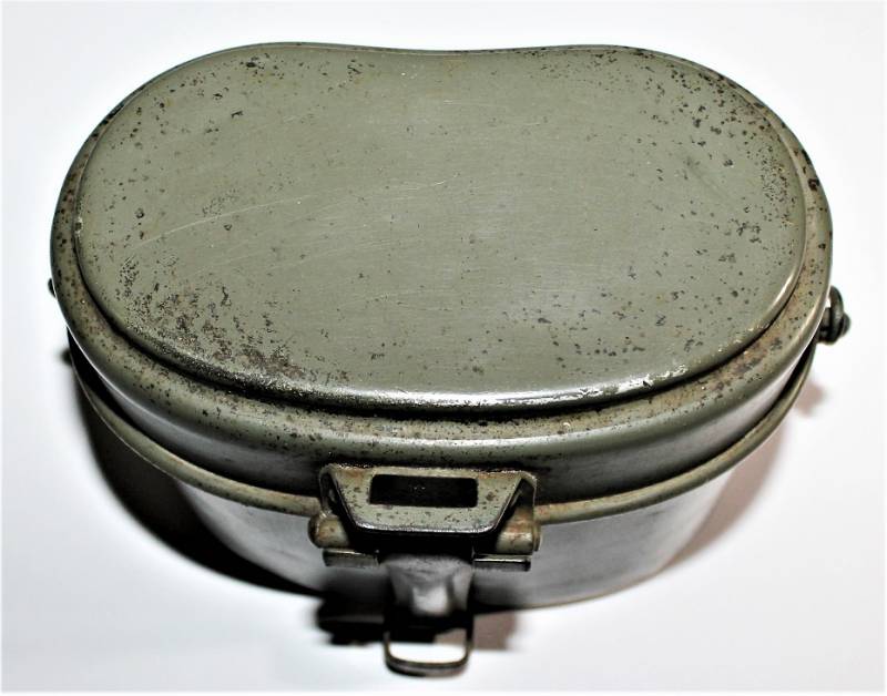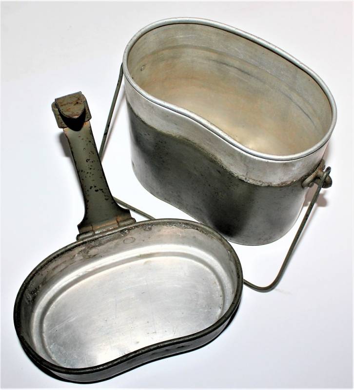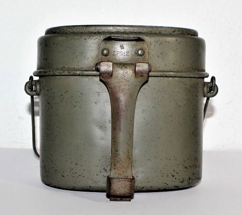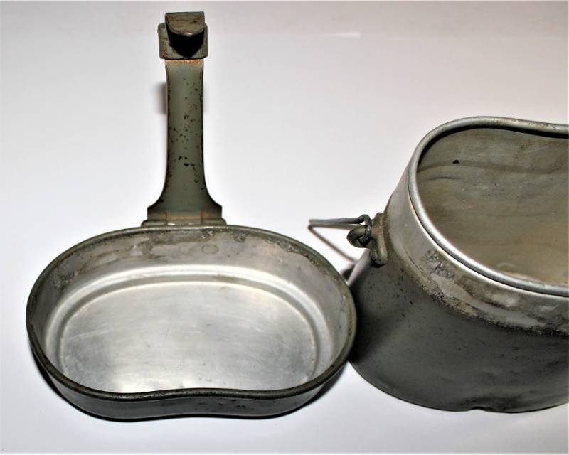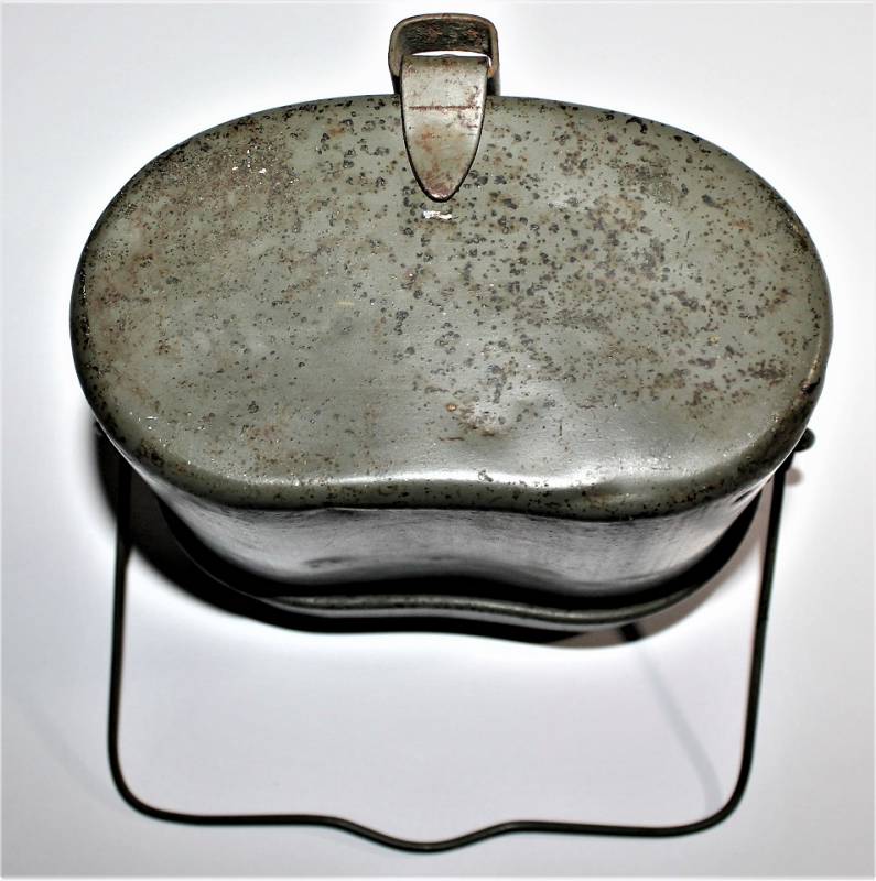 Rare M31 mess tin born in 90% 1st type light green color, complete in all its parts, not restored or repaired, with slight signs of aging and use, marked with manufacturer code and W.SS. 100% original WWII period.