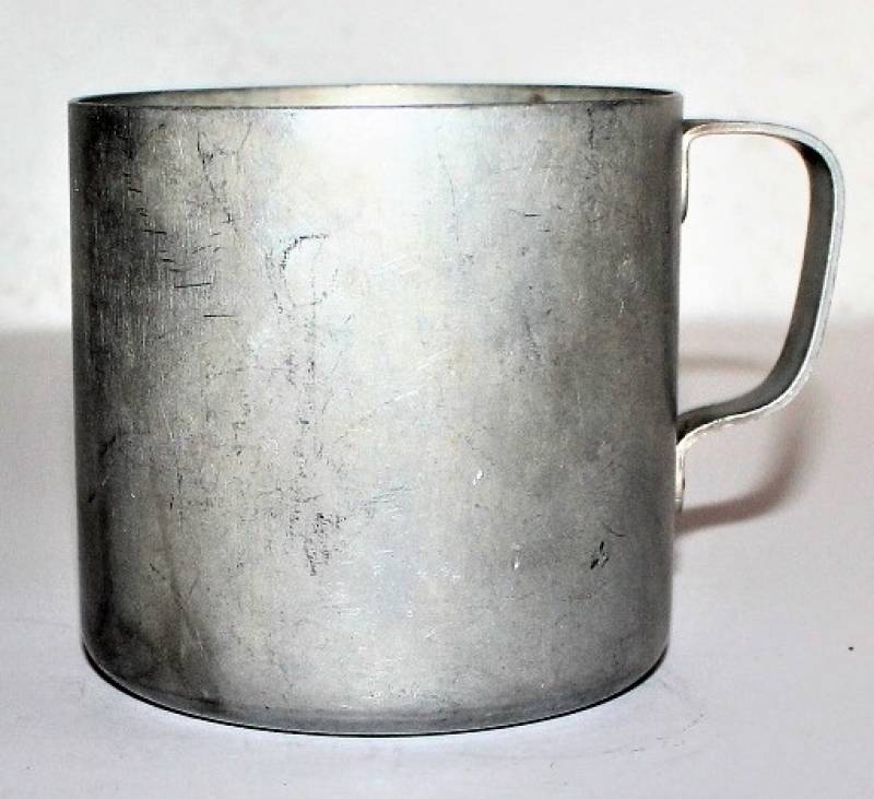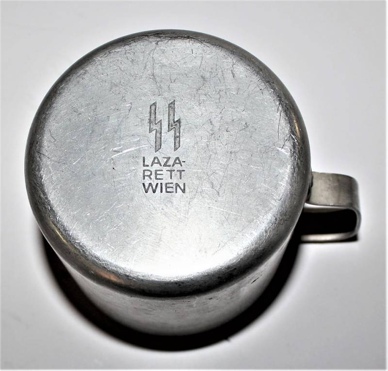 Aluminum mug marked SS Hospital of Wien in good condition only with patina of time and use.