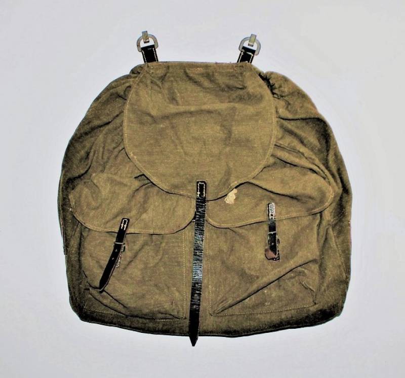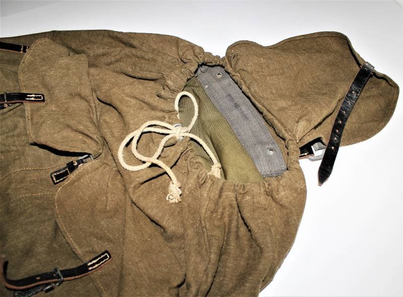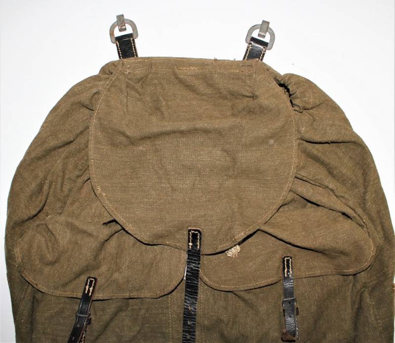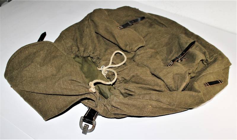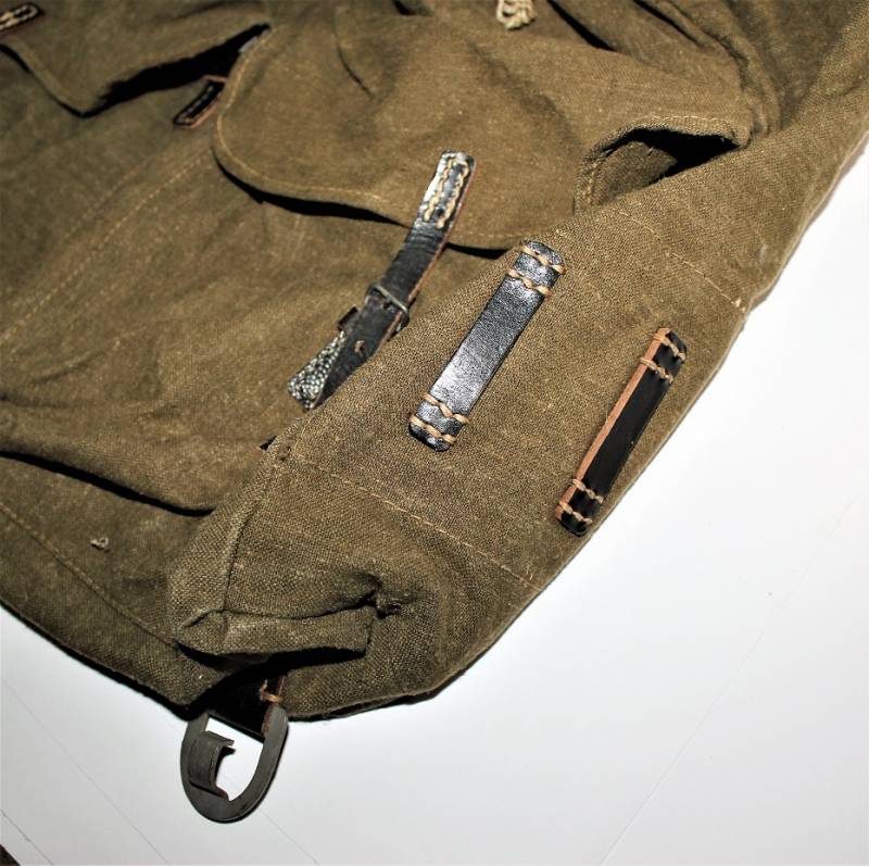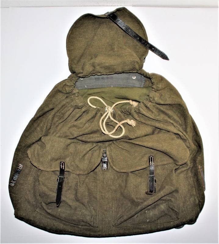 Backpack supplied WH-LW-SS born in green canvas with leather harnesses in excellent condition, without holes or tears and perfect stitching only with very light patina of time almost like new and complete in all its parts, marked inside with RBN n ...