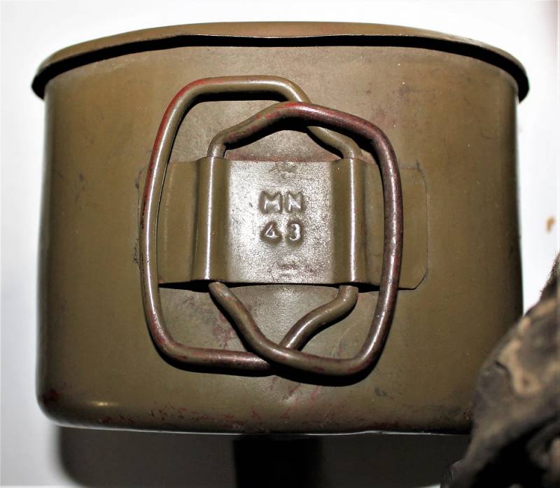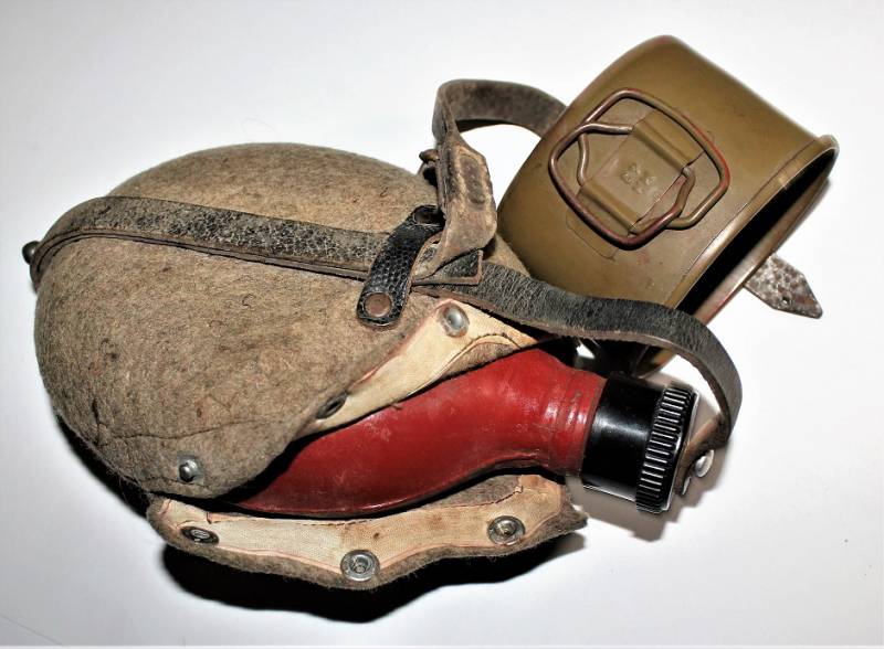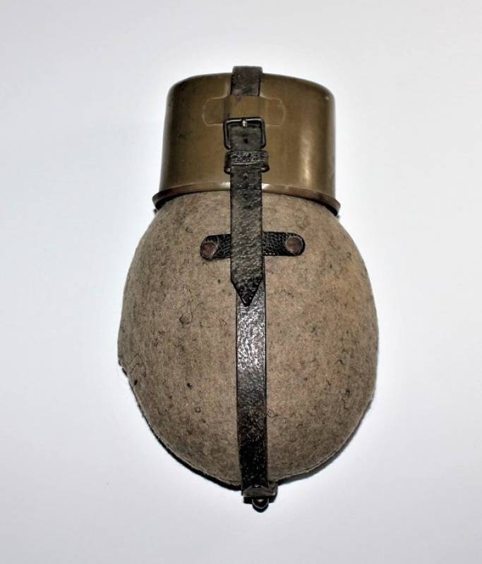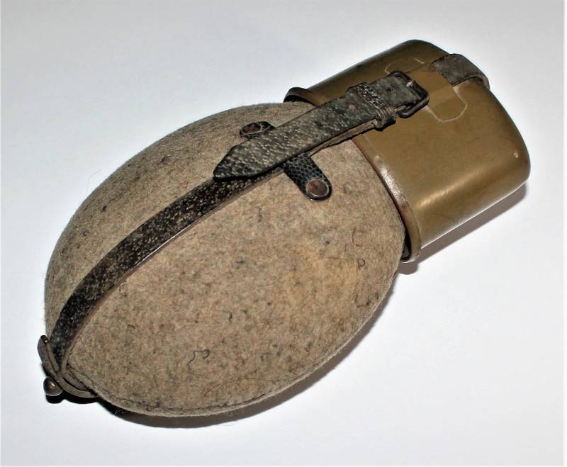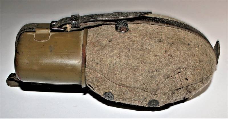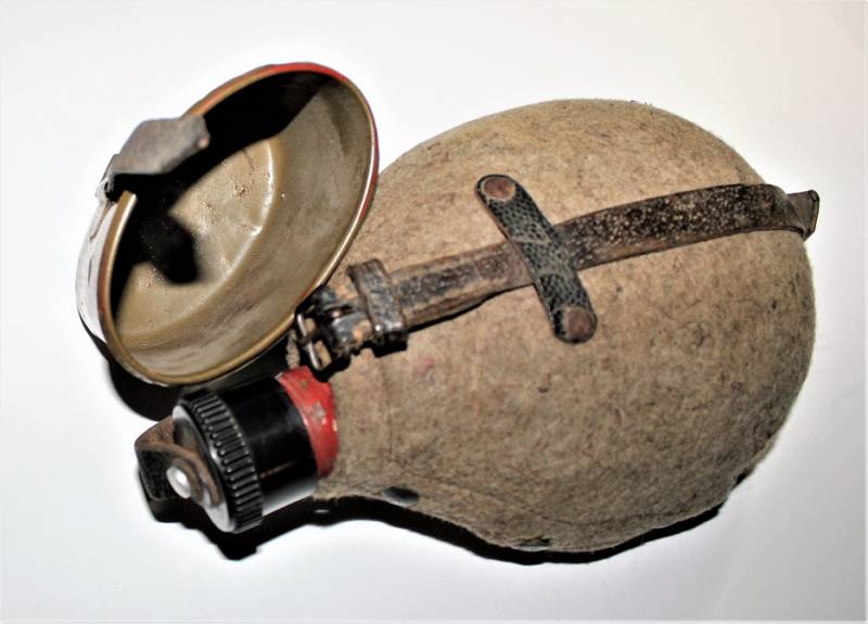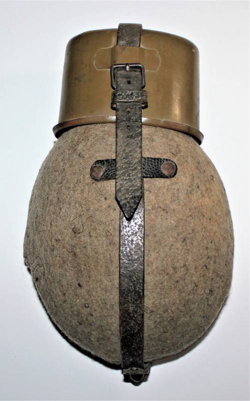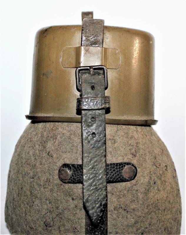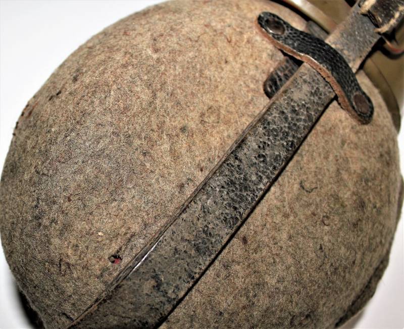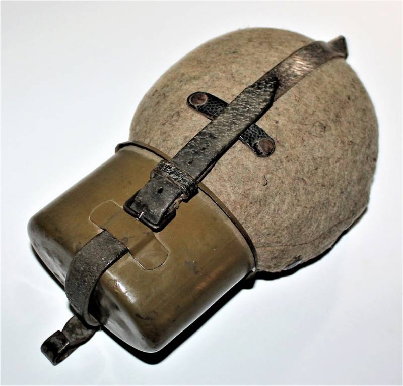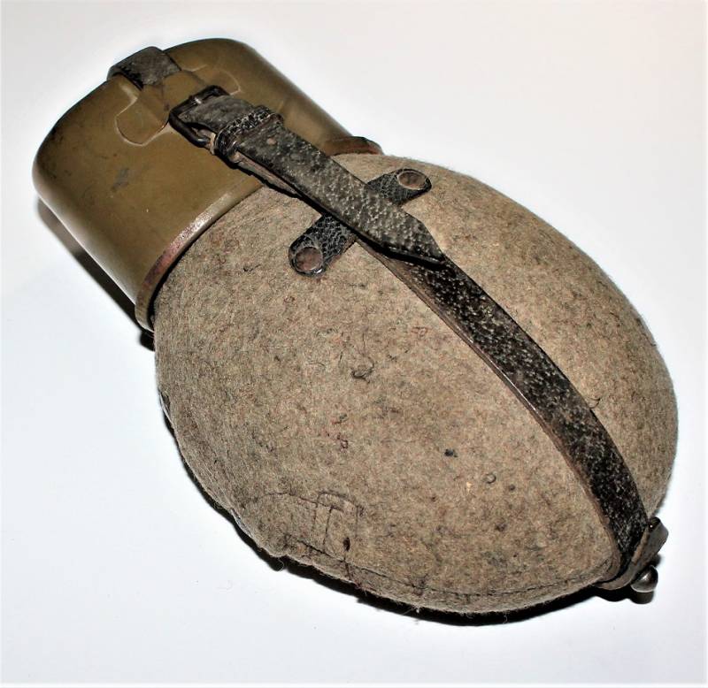M31 water bottle WH-LW-SS in excellent condition, complete with leather strap, not restored or repaired only with a slight patina of time and use, metal cup marked with manufacturer code and date 1943.