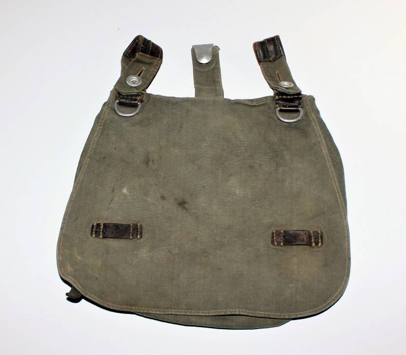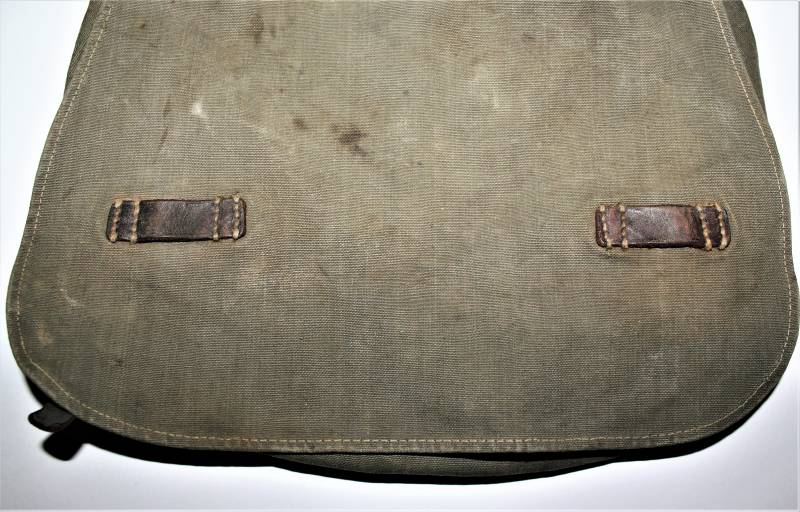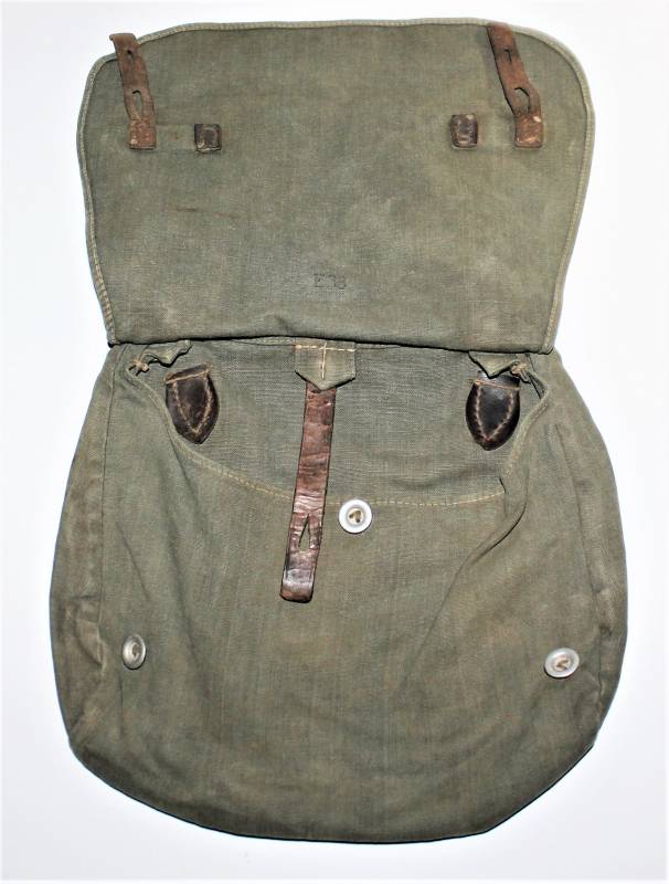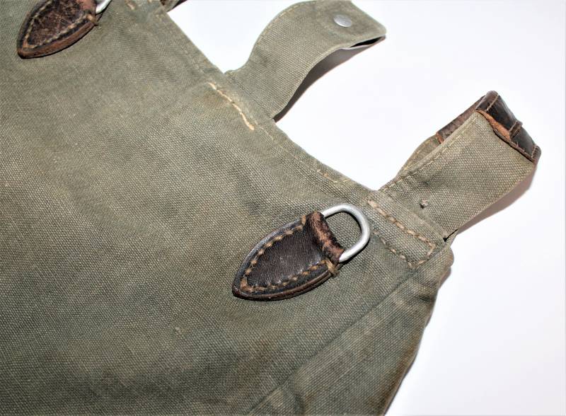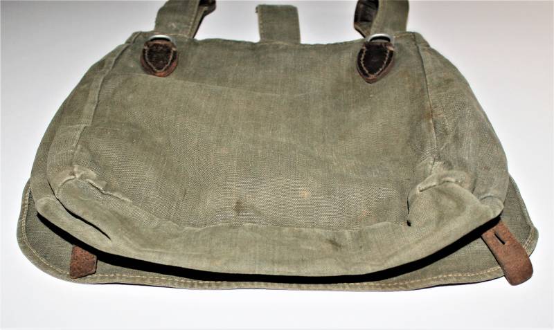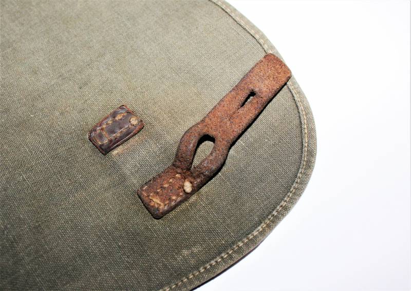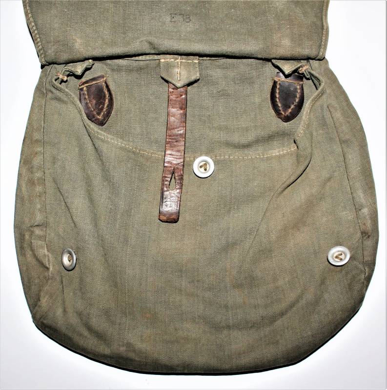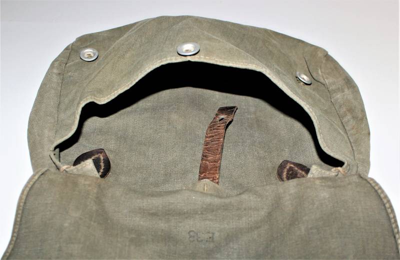 WH "BROTBEUTEL M31" in good condition in gray-green canvas, complete in all its parts, without holes or tears, only with a slight patina of time, internally marked E38.