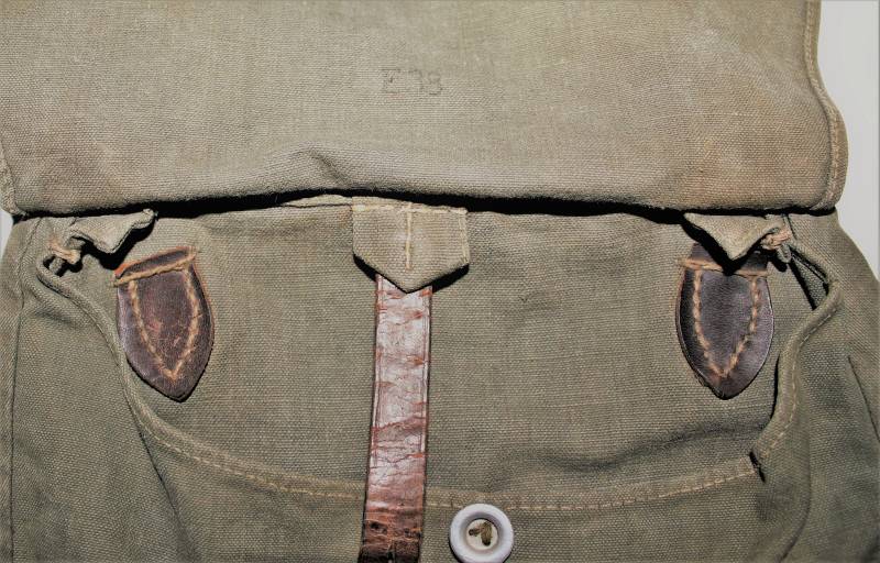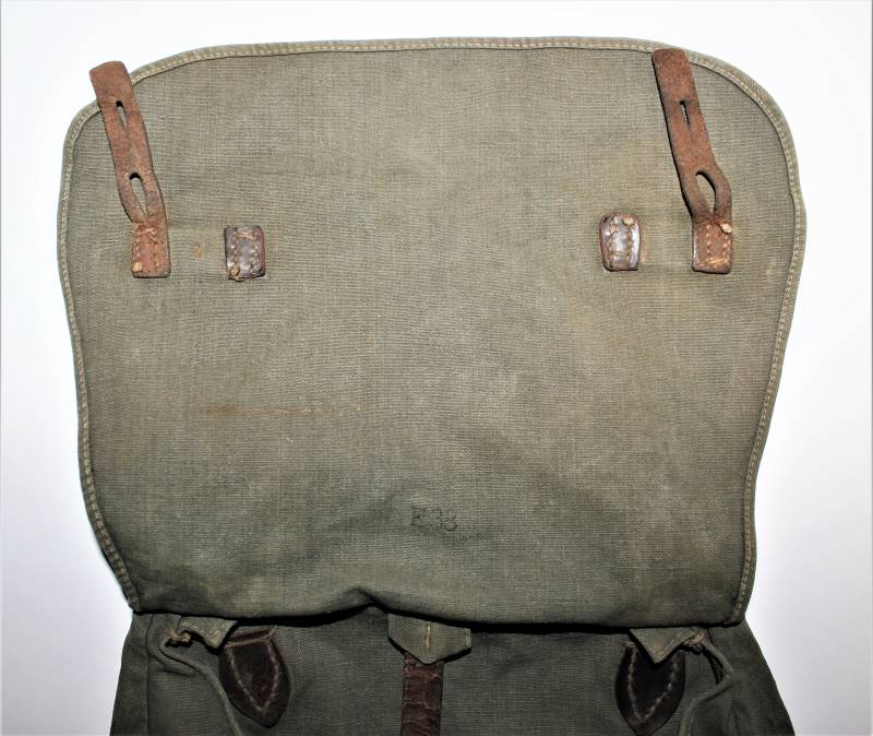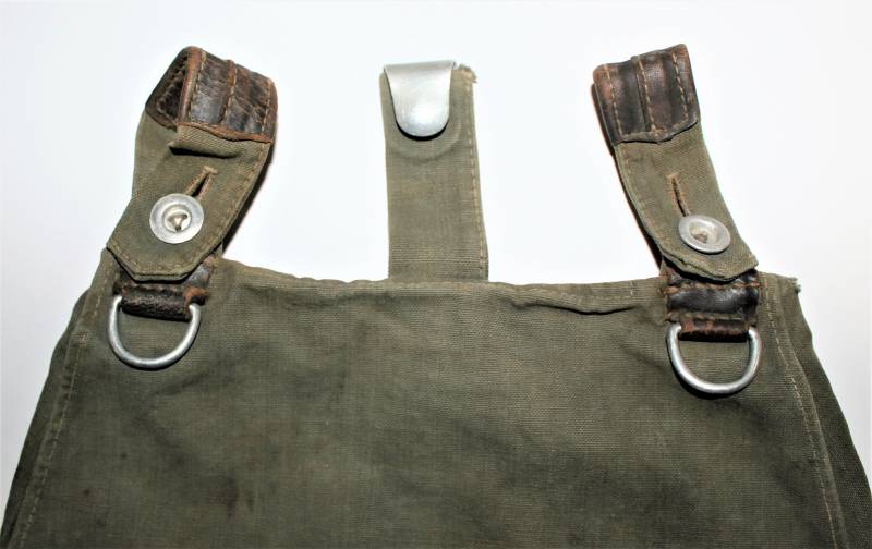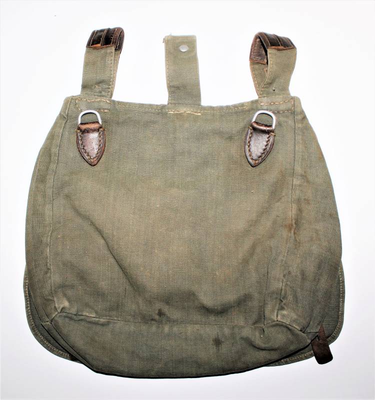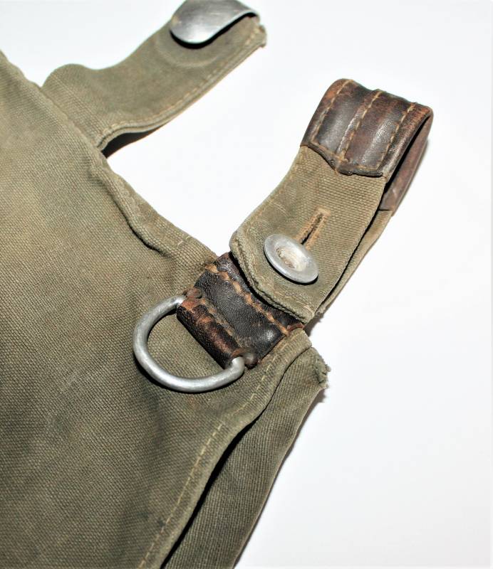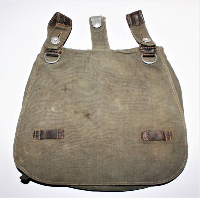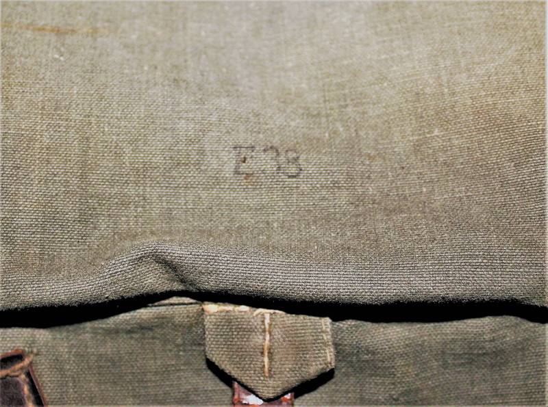 WH "BROTBEUTEL M31" in good condition in gray-green canvas, complete in all its parts, without holes or tears, only with a slight patina of time, internally marked E38.