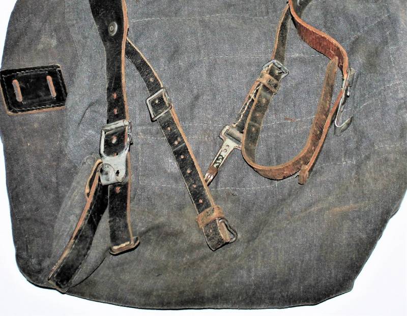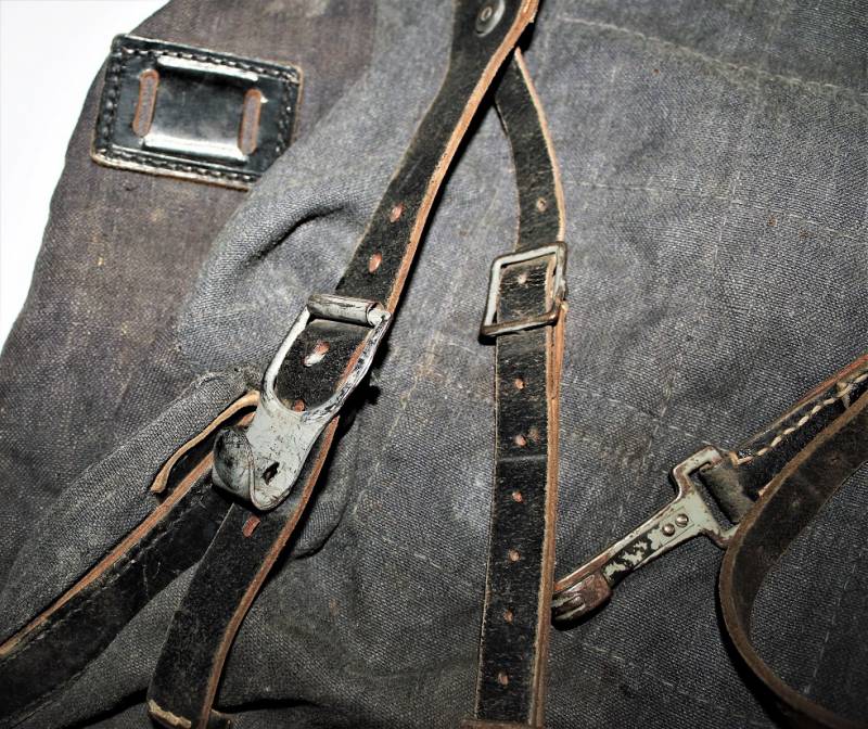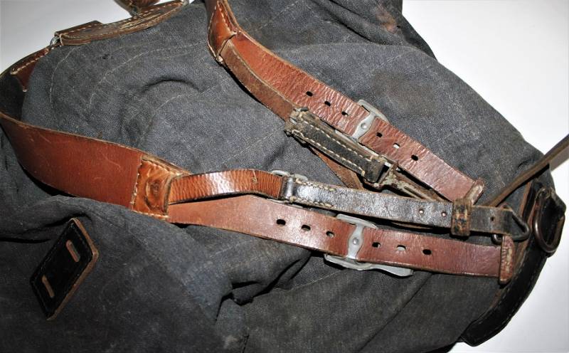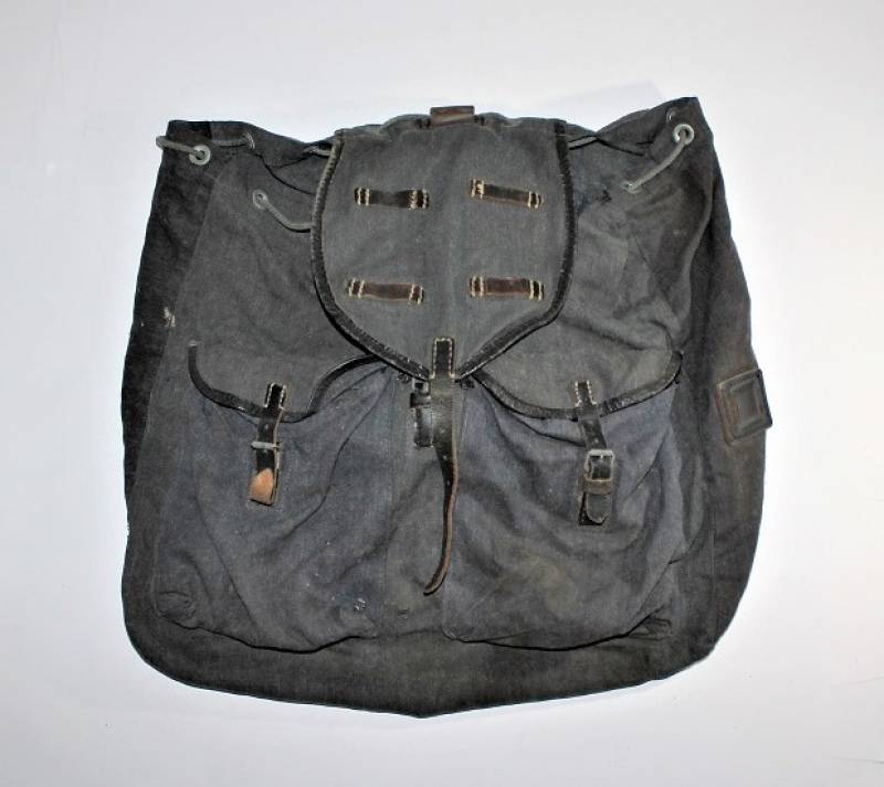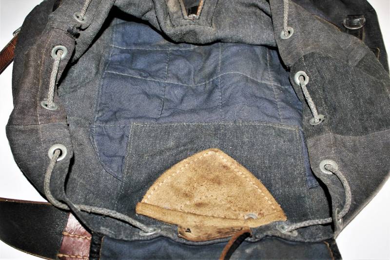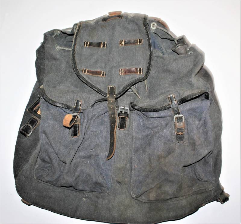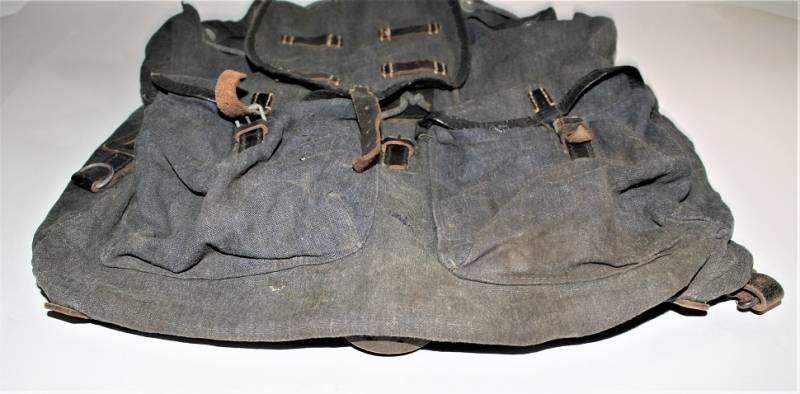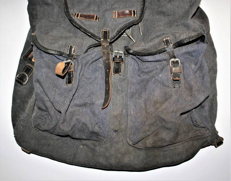 RUCKSACK Luftwaffe backpack born in blue canvas in excellent condition, slightly used, only with age patina, complete in all its parts, not restored or repaired. 100% original WWII period.