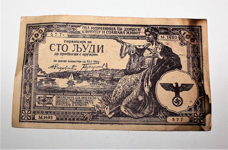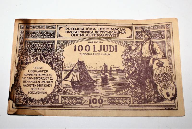 German 100 LJUDI banknote for occupation countries Jugoslavia-Montenegro in good condition, only patina of the time.