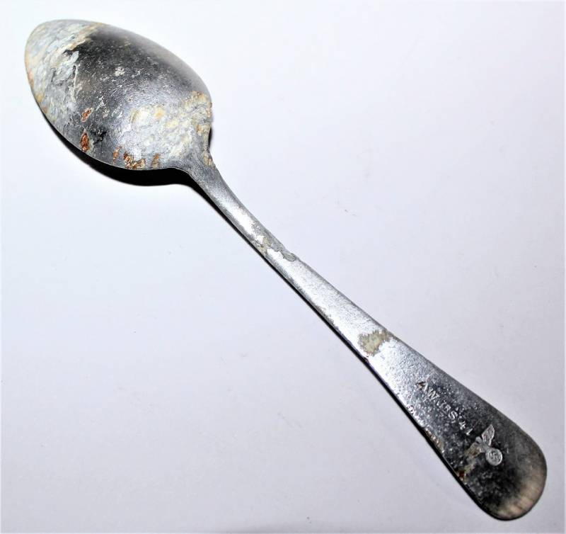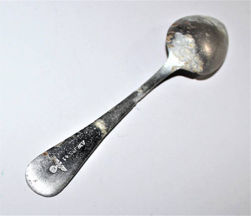 NSDAP aluminum coffee or tea spoon, marked with manufacturer, date 1941 and Eagle Political, fair condition but very used.