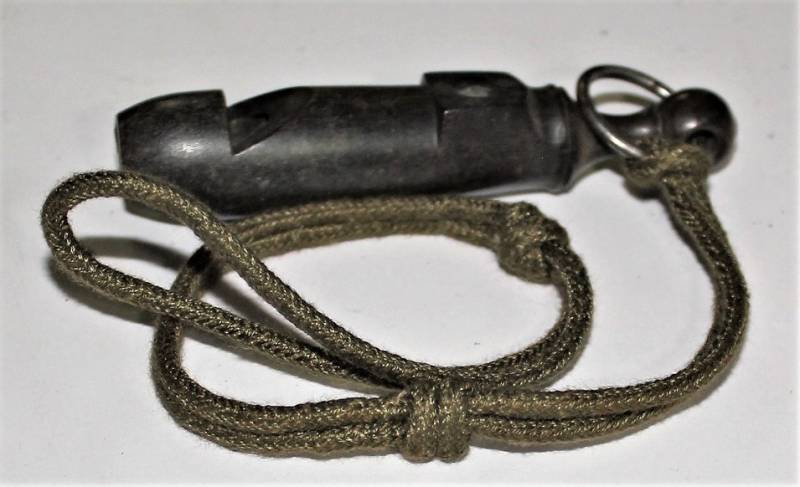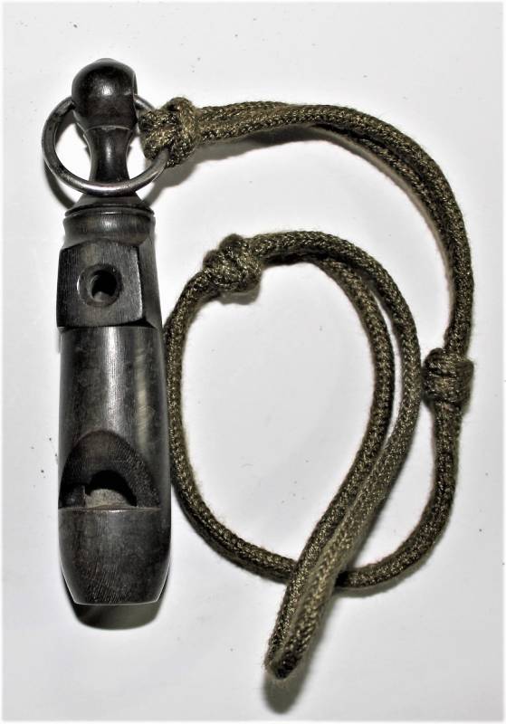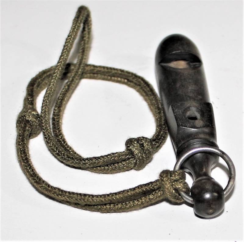 WH-LW-SS bakelite service whistle in perfect condition and complete with working cord. Original 100% WWII period.