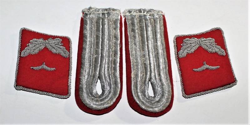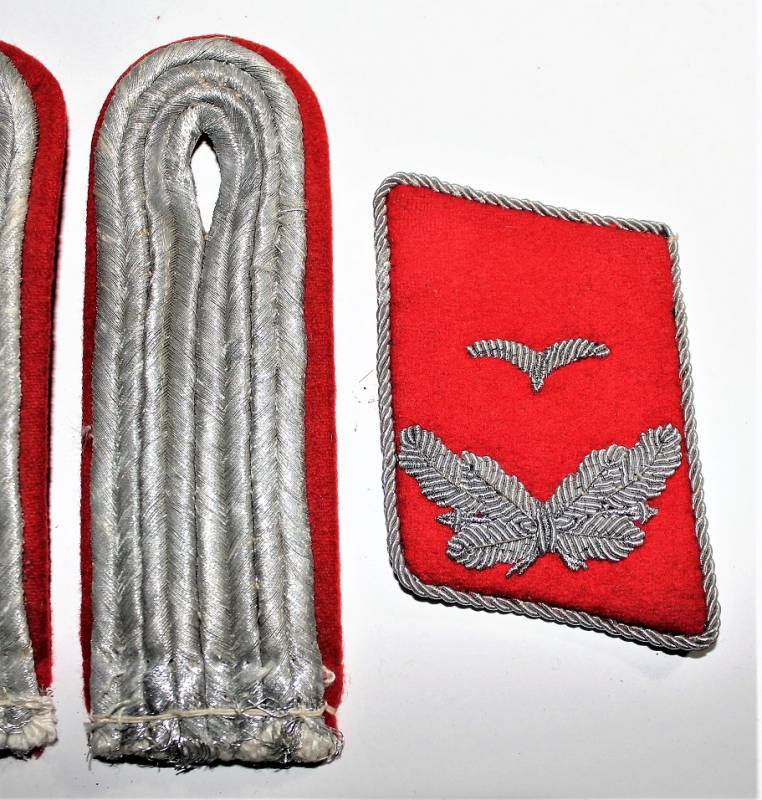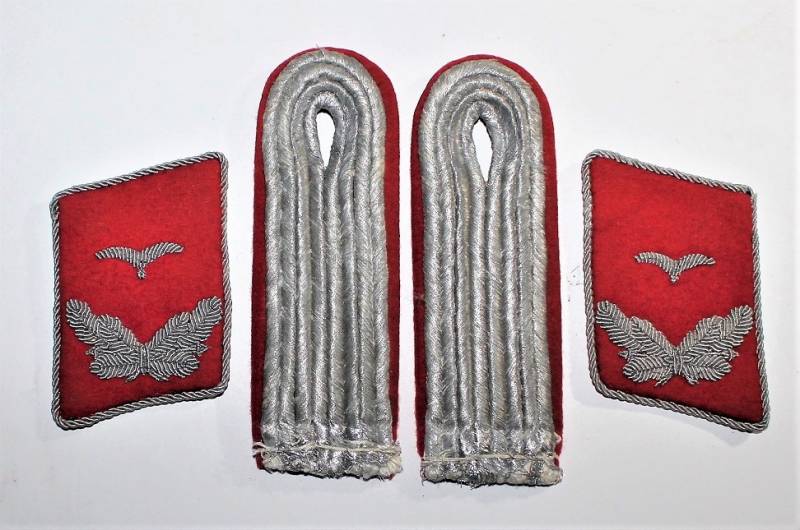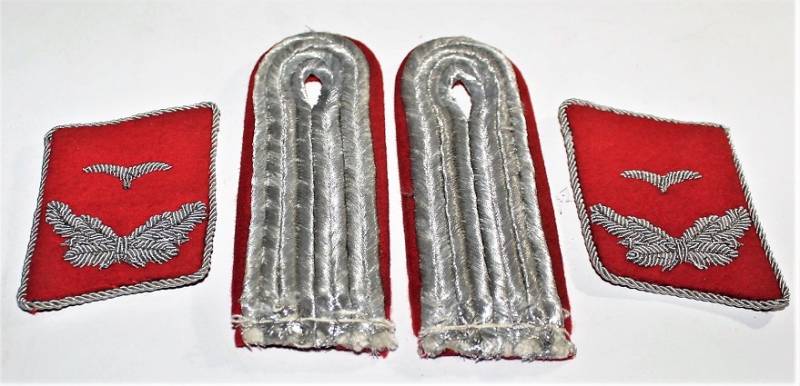 Set of Officer´s insigna in the rank of Lieutenant of the Luftwaffe departments Flak, red waffenfarbe, excellent conditions almost equal to the new. Original 100% WWII period.