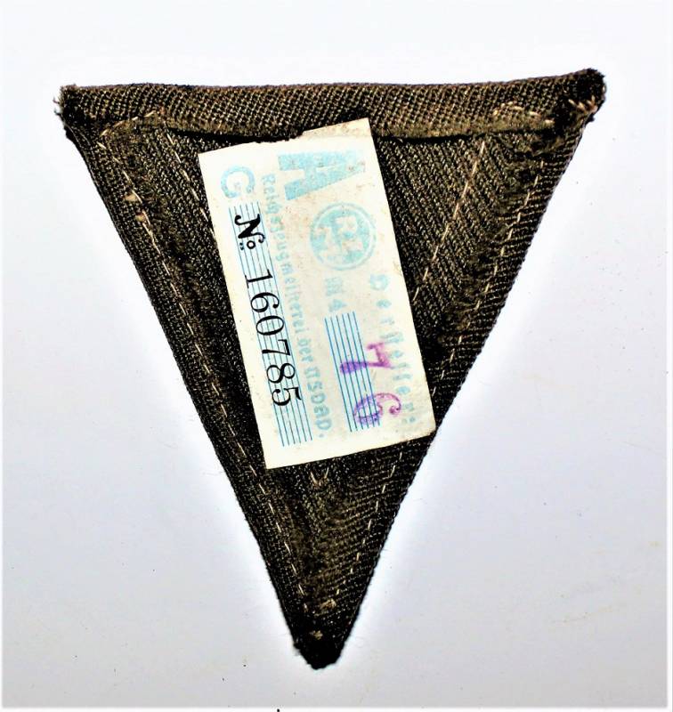 Insigna SA for jacket (Sturmableilungen) rank chevron in excellent condition, like new, never mounted on the jacket, still with acceptance tag with lot numbers, in use before 1 January 1939. 100% original WWII period.