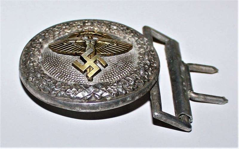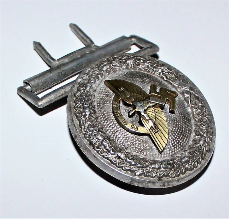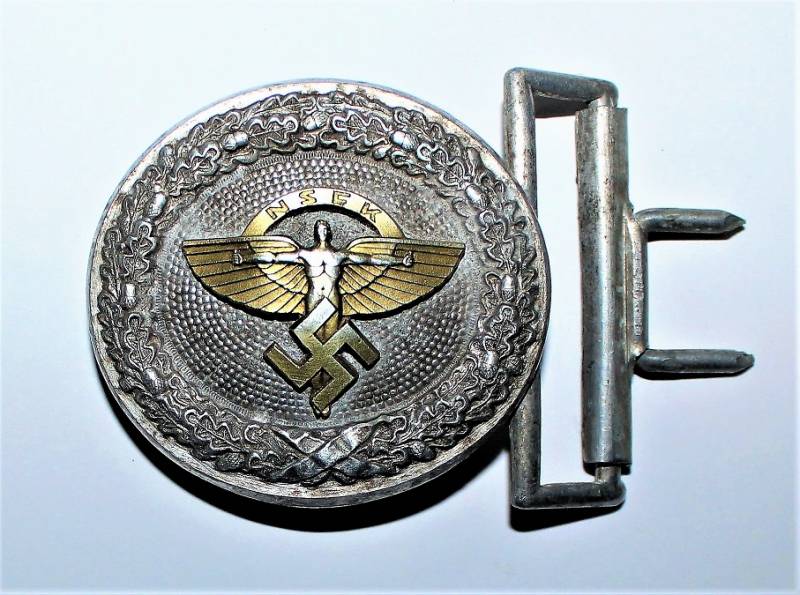 Beautiful and rare NSFK officer buckle in good condition, complete in all its parts, only with a light patina of time and use, marked with manufacturer ASMANN.